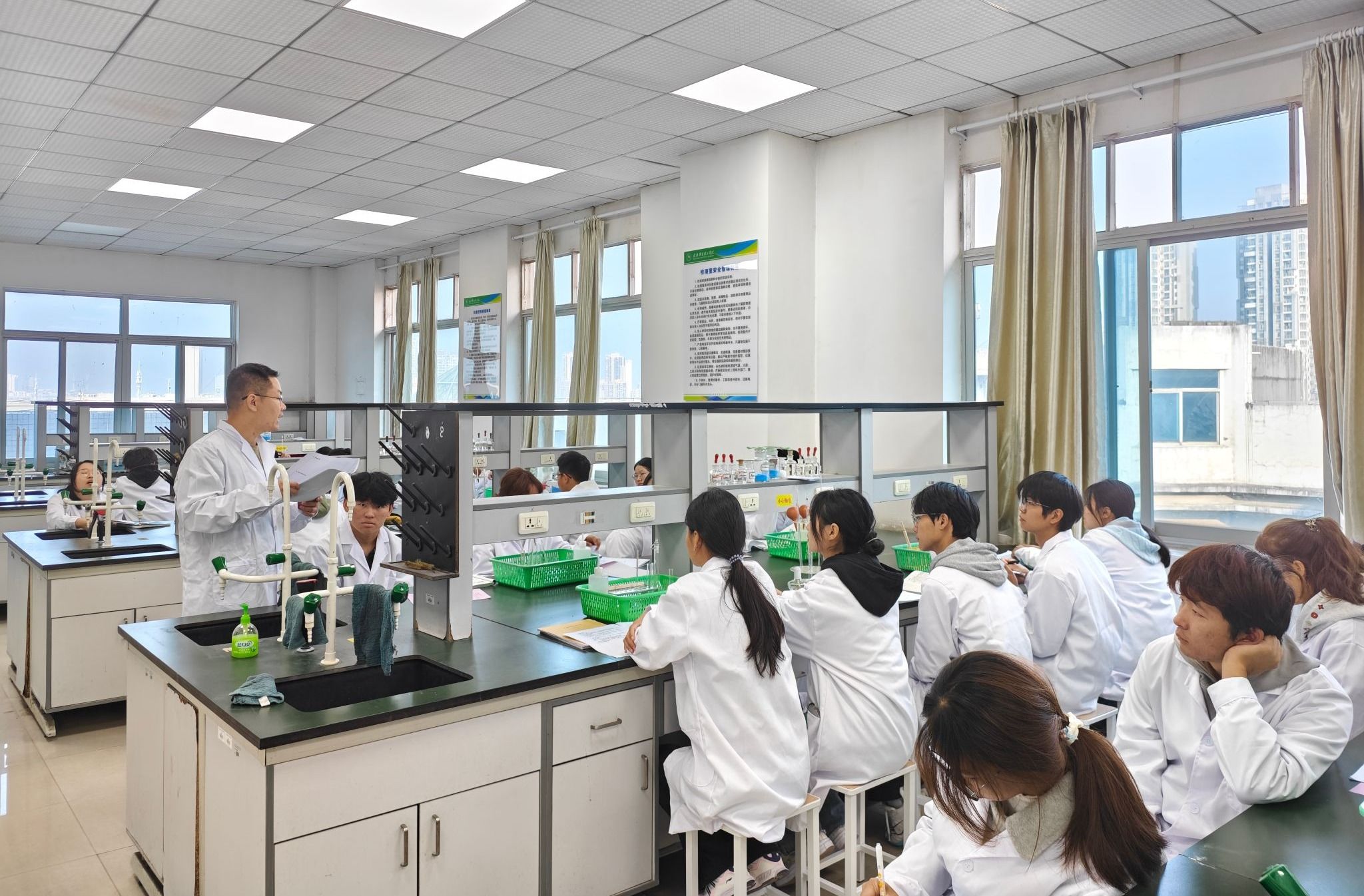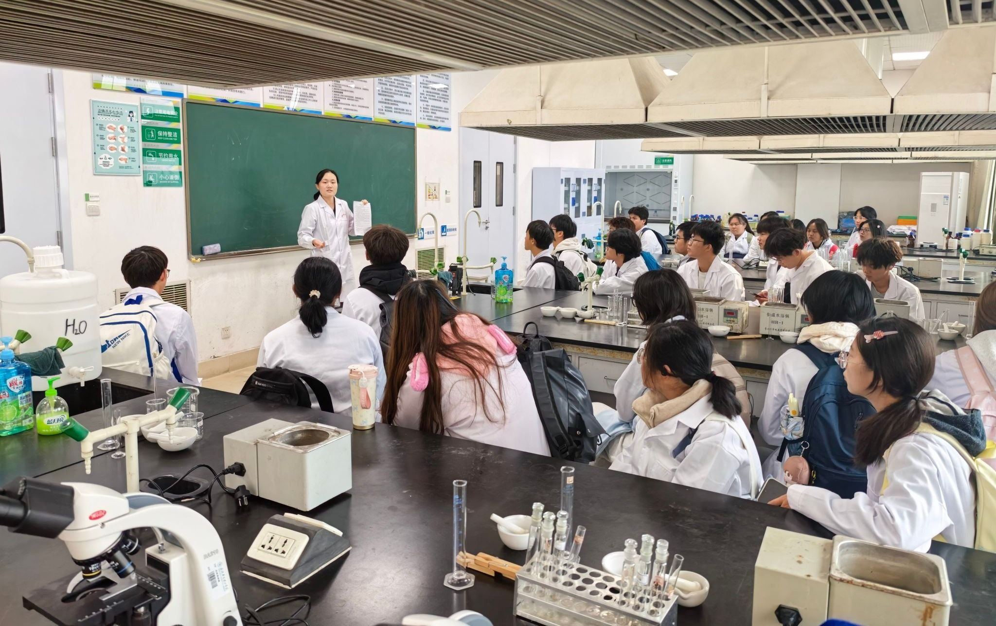 金秋时节,天高气爽。第9周伊始,我院2025级新生迎来了一次意义特殊的跨校区学习之旅。他们从梧桐湖校区出发,乘坐大巴前往光谷校区,首次踏入实验室,顺利完成了无机化学实验的首次课程。此次课程不仅是实验教学的开始,更是一次生动的专业认知与实验室安全教育。