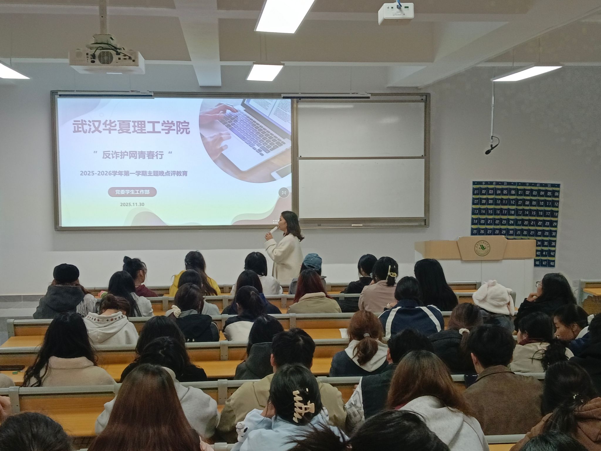 11月30日,生物与制药工程学院辅导员陈昌翠老师在梧桐湖校区C318教室开展“反诈护网青春行”主题宣讲课堂,旨在提升同学们的反诈防骗意识,筑牢校园安全防线,守护青春财产安全。