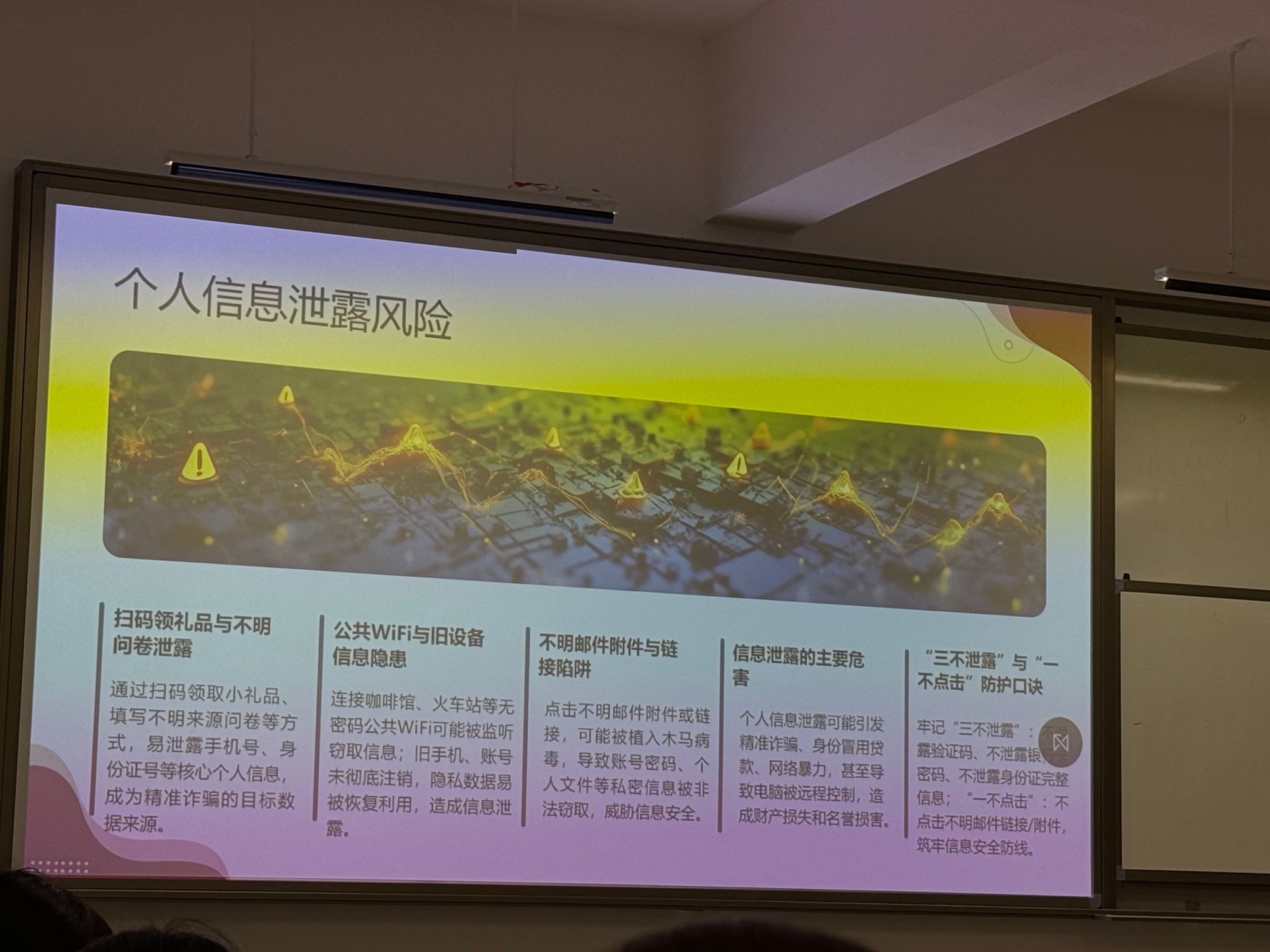 为帮助同学们掌握防诈技能,辅导员陈昌翠提出“三绝”核心准则:绝不轻信陌生来电、短信及网络信息,绝不随意扫描不明二维码、点击未知链接,遭遇诈骗后绝不沉默,第一时间报警并向老师、家长求助。同时,针对AI换脸诈骗、游戏装备账号交易诈骗、虚拟货币及数字藏品投资诈骗等新型骗局,陈老师提醒大家务必警惕个人信息泄漏风险,严格遵守“三查四不”原则——查身份、查资质、查信息真实性,不贪小便宜、不透露隐私、不轻易转账、不点击陌生链接,遇到可疑情况及时核实,坚决守住财产安全底线。