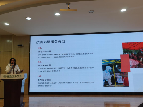来自生药1252班的李丹玉以《志愿服务精神与实践》为题,分享了自己的志愿经历、志愿榜样以及在志愿成长中的收获。她深入解读“志愿”的精神内核,从“守护家园”的具体行动,到“服务精神”的深度思索,让“奉献”的价值在分享中引发全场共鸣。