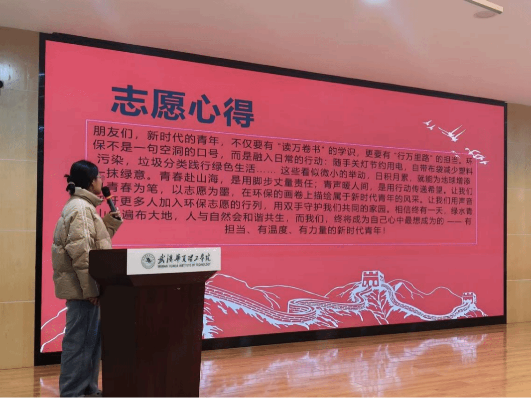 来自不同年级的七位选手以“青春+志愿”为主题,将自己独特的服务经历、温暖人心的善意故事,化作直抵人心的“青声”,书写出担当与热爱的青春篇章。来自医检1251班的林莉以《环保的双向奔赴》为题,以“志愿守护家园”为落脚点,讲述当代青年如何用行动让“环保点亮绿色家园”,让志愿的意义在实践中愈发清晰明朗。