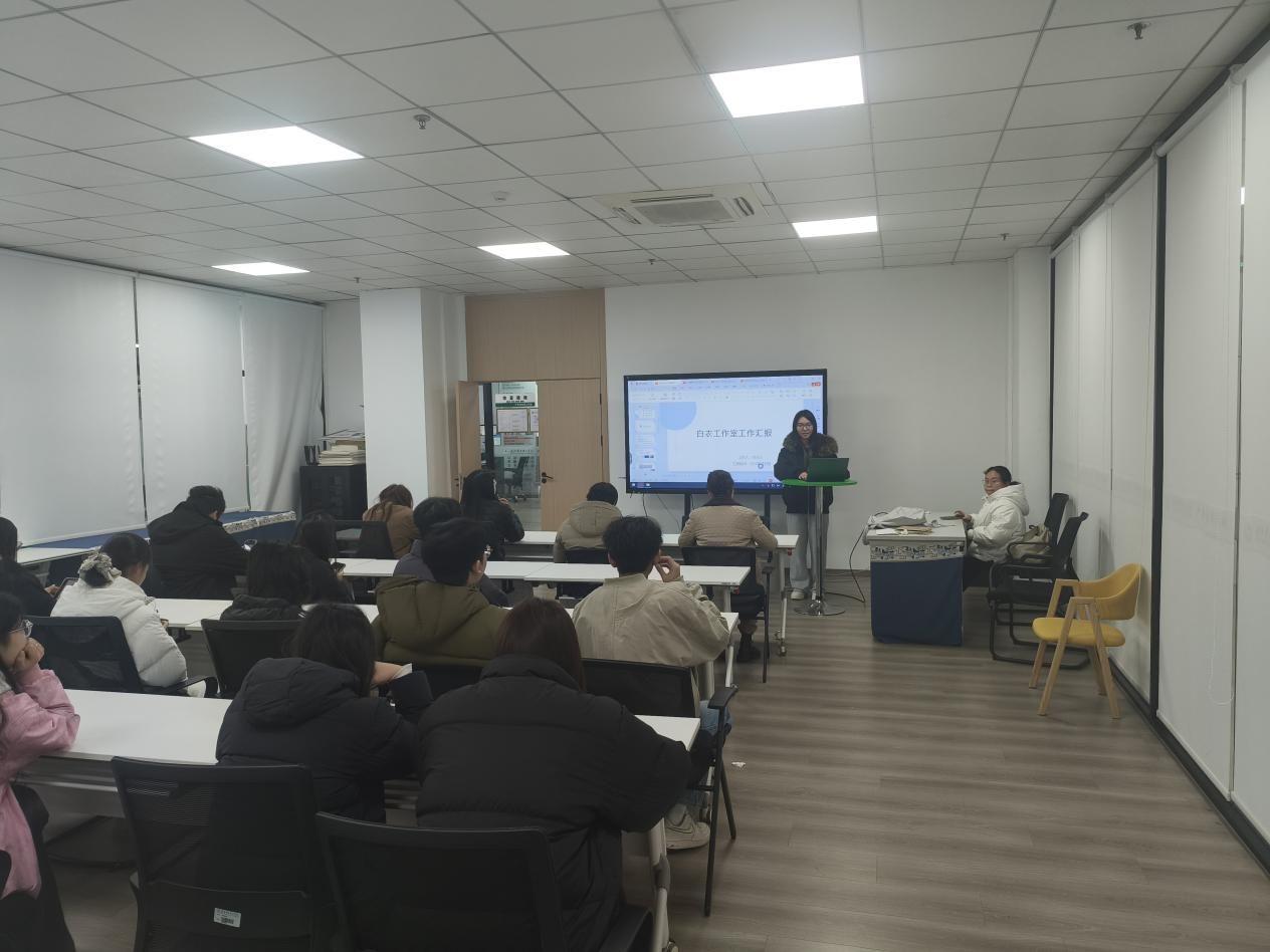 会议开始,主持人刘含蓓率先进行工作室年度总体工作汇报。她从科研项目推进、学科竞赛参与、个人和小组所获荣誉等方面,系统梳理了过去一年工作室的整体发展情况。汇报中,刘含蓓用翔实的数据图片和清晰的脉络,展现了工作室在跨学科协作、科研能力提升等方面的突破,同时明确了未来的工作安排,为后续各小组汇报及工作室发展规划提供了思路与参考。