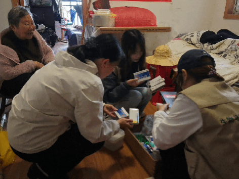 针对社区内80岁以上高龄老人,志愿者们提供专属上门贴心服务,为老人免费测量血压,耐心解读血压数值对应的健康状况,细致讲解日常血压养护知识。除此之外,志愿者们还逐一协助老人整理家庭药箱,认真核查每一款药品的有效期、用法用量,反复叮嘱老人规范服药,避免误服过期药品、错用药物等情况发生。贴心的上门服务、专业的用药指导、暖心的健康叮嘱,让高龄老人们真切感受到青年学子的温情与关爱,整场志愿服务氛围温馨融洽。