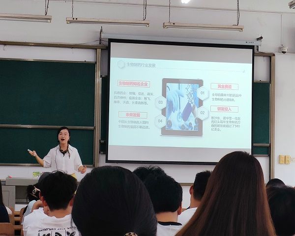 介绍会上,生物制药系吴春姗主任首先对各位新同学的到来表示热烈欢迎,并充分肯定了大家通过努力进入本科阶段学习的成果。随后,讲座围绕生物制药行业前景、学院专业概况、毕业发展方向及人才培养方案等多个维度全面展开。