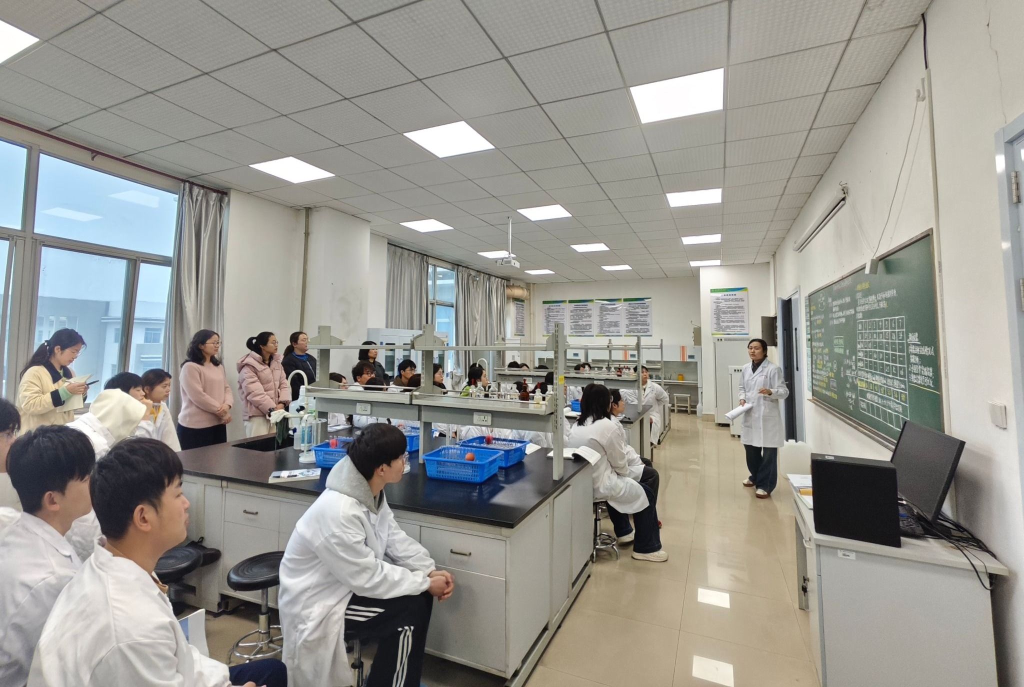 为进一步深化实验教学改革,挖掘专业课程中的思政元素,提升人才培养质量,3月19日,生物与制药工程学院实验中心王贝老师开展了一场令人如沐春风的《生物化学实验》教学公开课。课堂不仅聚焦于严谨的实验技能训练,更巧妙地融入了科学家精神与爱国主义教育,为在场师生呈现了一堂有深度、有温度的生命科学实验课,实验中心主任刘桂艳、教师石炎、郭婷婷、汤子琪、袁静参与听课。