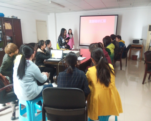 本支部全体党员参加本次学习交流会,会议开始,由生物与制药工程学院党员服务站负责人胡珊进行支部现状汇报。