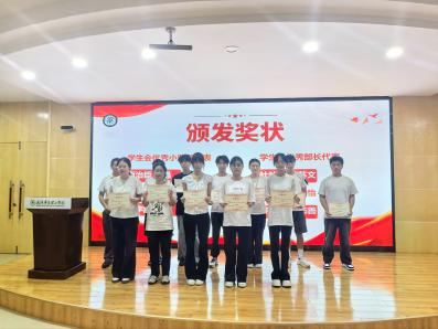 随后进入工作表彰环节。经各部门推荐、团组织评议及院团总支批准,对学年内表现突出的个人予以表彰。其中,学生会安沁欣、杜灿灿等12人获“优秀部长”,陈东东、夏露斌等18人获“优秀小助理”;青协周明月、梁慧等8人获“优秀部长”;心协肖丽娜、田正东等5人获“优秀干部”,谭子恒、叶淇等12人获“优秀小助理”;白衣天使社团胡可、汤孜翔等7人获“优秀部长”,谭露、石博文等3人获“优秀社员”。生物与制药工程学院学生工作办公室主任张明老师为获奖代表颁发奖状,全场以热烈掌声向获奖同学表示祝贺。