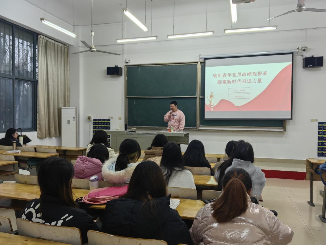 2026年3月16日17:50,生物与制药工程学院党员服务站在教学楼3-108组织开展了“筑牢青年党员政绩观根基,凝聚新时代奋进力量”为主题的理论学习活动。此次会议由徐琢玉担任主讲人,全体学生党员积极参与,共同深入学习了正确政绩观的核心要义及2026年全国两会精神。