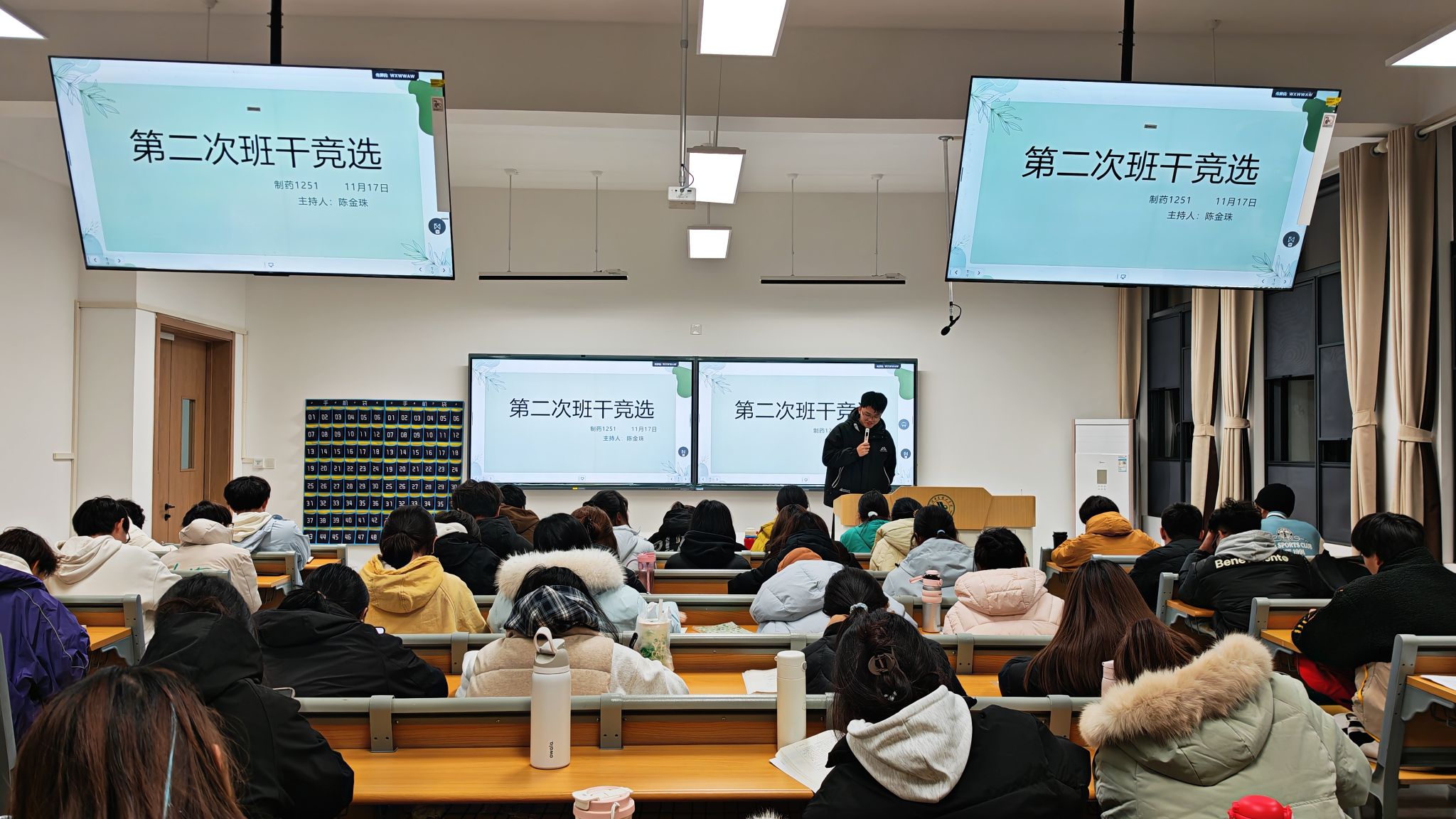 11月17日,制药工程1251班第二次班干部竞选在梧桐湖校区B315教室举行,由班级团支部陈金珠主持。竞选现场,候选同学依次上台,围绕岗位职责阐述工作思路。