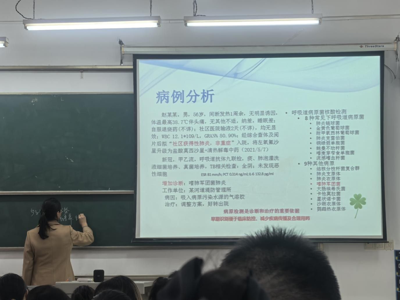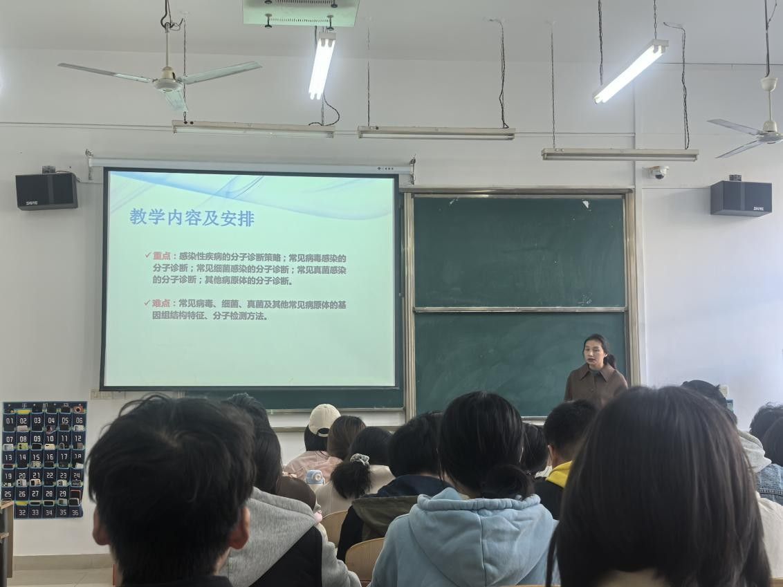 本次合作授课中,李波老师聚焦三大核心模块展开专项教学:一是感染性疾病的分子诊断,结合临床常见病原体检测案例,详解技术在疫情防控、疑难感染诊治中的应用;二是药物相关基因的分子诊断,围绕个体化用药核心需求,阐述基因检测如何指导药物选择与剂量调整;三是临床分子诊断的质量控制,从实验室规范、结果溯源、误差防控等维度,强化学生的质量意识与实操严谨性。授课过程中,李老师结合自身临床工作实例,从技术原理、操作规范到临床应用场景进行系统讲解,针对实时荧光定量 PCR、基因测序等核心技术,通过案例分析、数据解读等方式将抽象理论与具体场景结合,帮助学生理解技术背后的临床逻辑;同时分享典型病例的解决方案,引导学生树立 “以患者为中心” 的检验思维。本校讲师则承担其余模块的教学任务,从课程体系衔接、理论基础巩固、通用技术拓展等方面进行补充授课,双方优势互补、互动衔接,形成了 “临床专家讲专项、校内讲师强基础” 的高效授课模式。