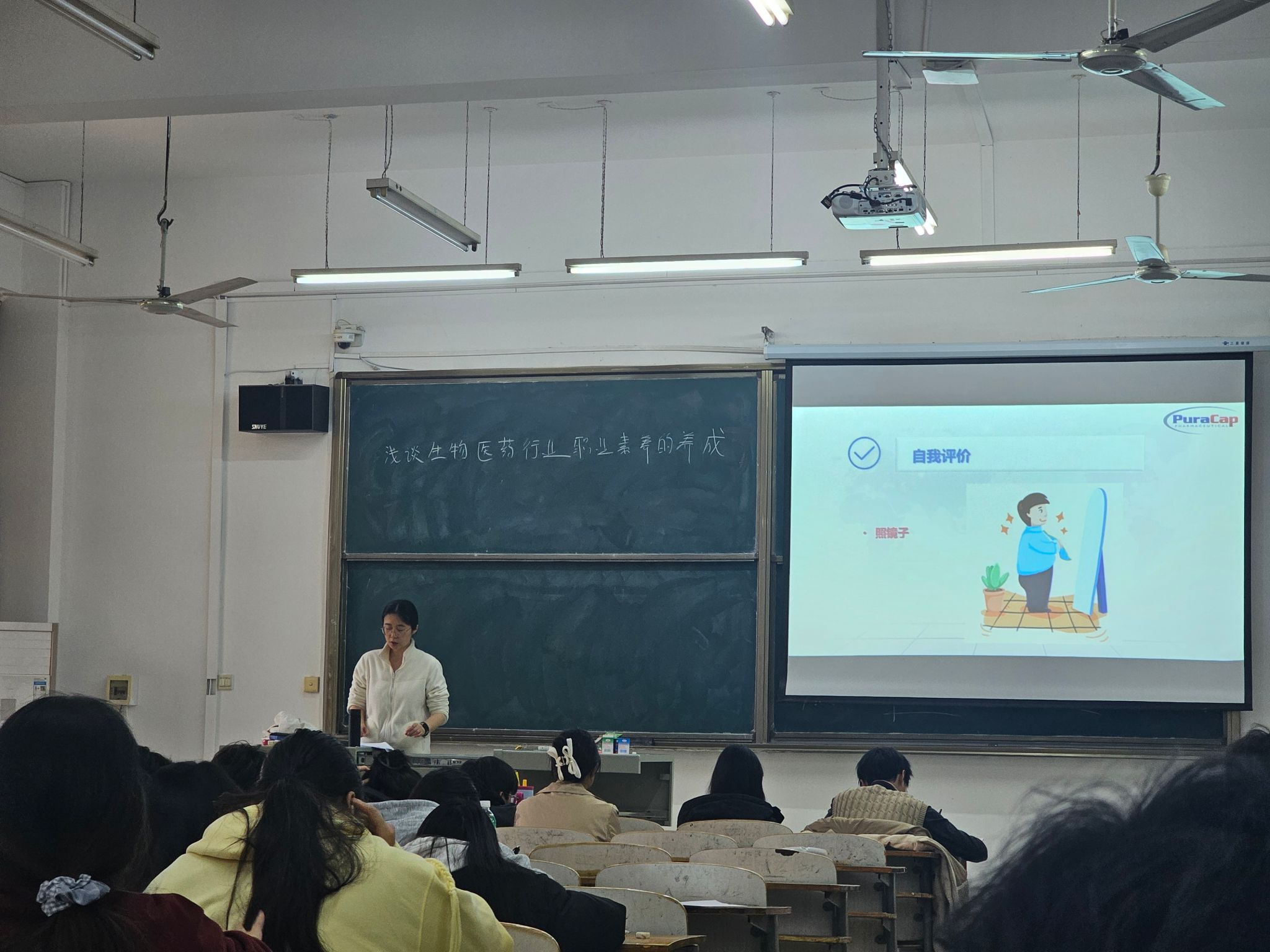 为深化产教融合,创新人才培养模式,我校生物与制药工程学院携手知名医药企业宜昌人福药业、人福普克药业有限公司,共同开设《职业素养教育》校企合作系列课程。近期,课程正式开讲,两位来自医药行业的资深导师与我校商学院、艺术学院老师联袂授课,为同学们带来了一场从行业宏观洞察到个人职业发展的知识盛宴。