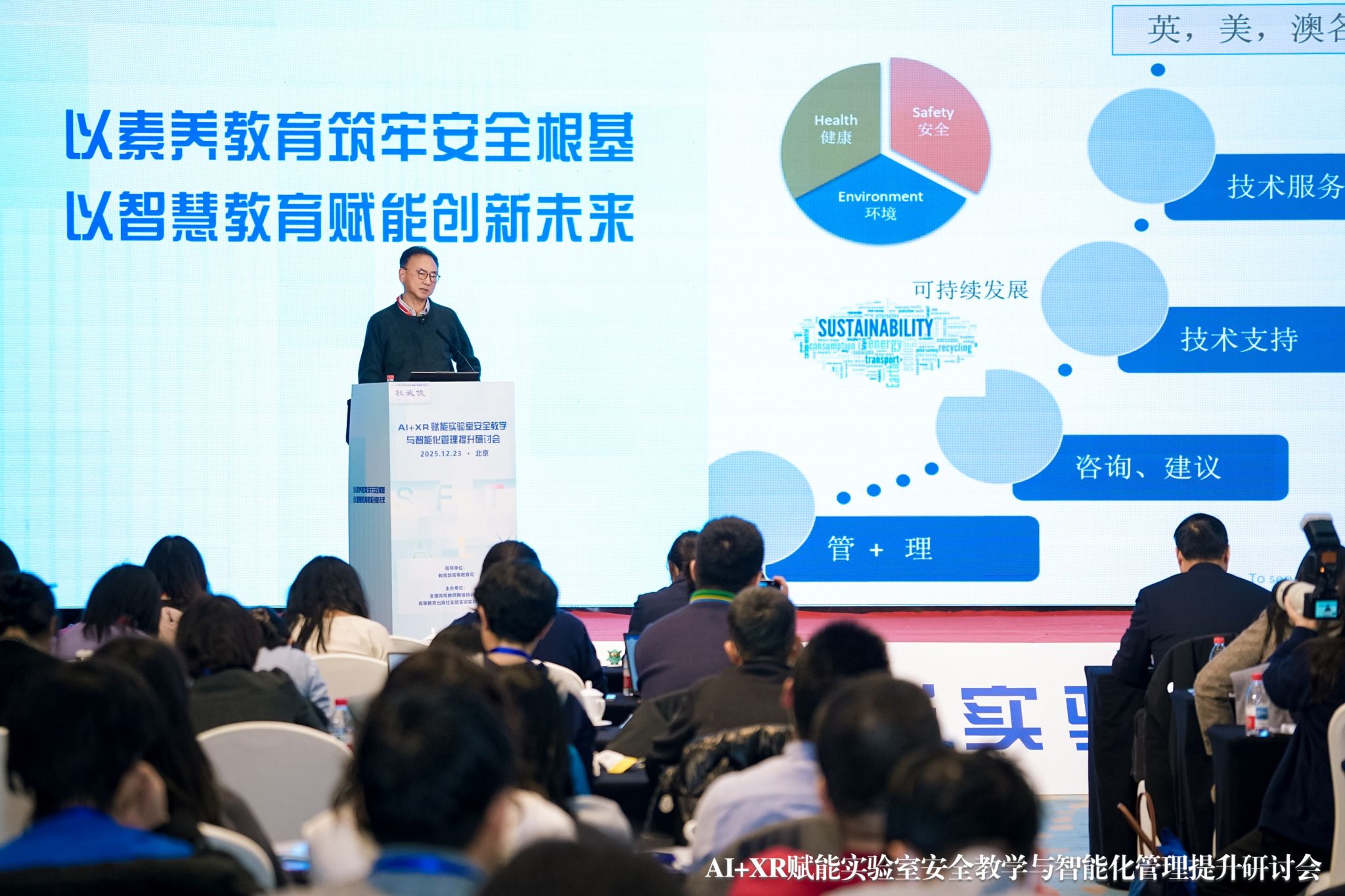 本次研讨会聚焦人工智能(AI)与扩展现实(XR)等前沿技术在实验室安全领域的最新应用与实践。在主题报告环节,中国科学技术大学讲席教授江俊、北京首钢自动化信息技术有限公司技术总监蔡红蕾、香港科技大学(广州)健康、安全及环境处处长杜武俊、武汉大学动机学院实验教学中心主任、教育部高校实验室安全专家廖东梅等专家,分别围绕“未来实验室:让AI成为新的‘安全助理’”、“基于工业场景的实验室安全能力安全培养:知识-技能-素养三维驱动”、“智治未来:香港科技大学实验室安全管理体系的探索实践”、“高校实验室安全教育培训的融合创新模式探索”等议题作了精彩分享。本次研讨会内容充实,报告深入浅出,AI与XR技术的深度融合,为实验室安全教育提供了前所未有的沉浸式、交互式、可重复且无风险的全新手段。本次会议共同探讨如何利用AI+XR技术破解传统实验室安全教学与管理中的痛点、难点,从而系统性提升实验室安全教育的沉浸感、互动性与有效性,并推动实验室安全管理向智能化、精细化、预见性方向转型升级。