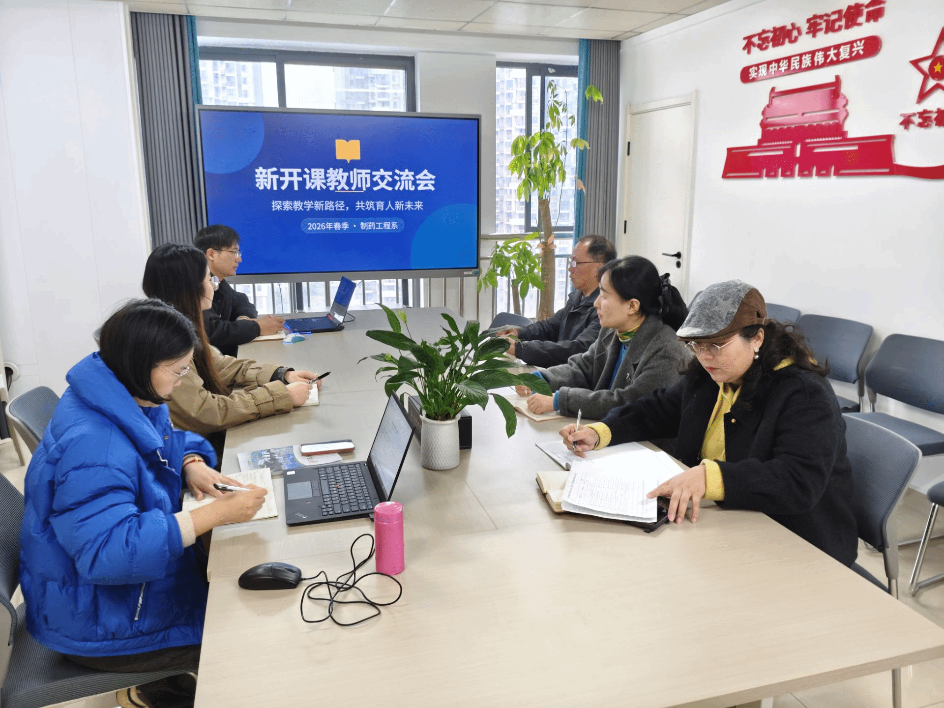 为助力新教师快速成长,夯实教学基本功,提升课堂教学质量,2026年3月23日,制药工程系在1110开展新开课教师交流教研活动。本次教研由操燕明老师主持,姬乔娜、高小红、黄冠、杜松云、汪林玉、彭巧等教师参与研讨,围绕新开课的课程情况展开深入交流与指导。
