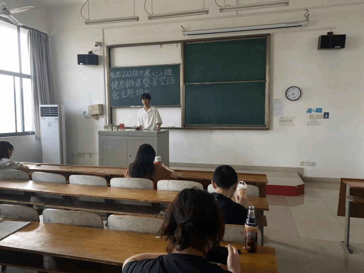 六月的阳光,暖洋洋地照在我们的身上,温暖校园的每一个角落。在这烁玉流金的季节里,为了防治心理疾病,维护心理健康,让同学更加高效地投入到学习和生活中。生物制药1222团支部于6月12日在班级开展“心理健康微课暨星空班会”主题班会。班会由团班陈翀主持,生药1222团支部所有成员参加。
