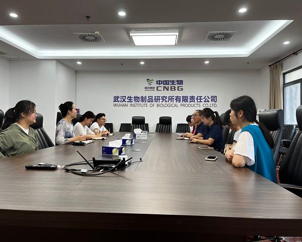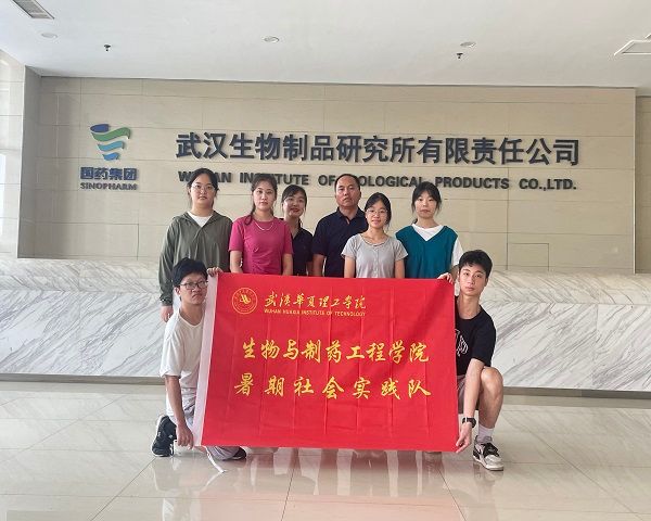 2023年7月19日,武汉华夏理工学院生物与制药工程学院暑期社会实践队——科技强国逐梦队全体成员(卢星烨、邵凌鹏、杨秋、杨丽雯、杨云、王瑞欣)在两位指导老师(吴春姗、操燕明)的带领下,前往武汉市武汉生物制品研究所有限责任公司开展企业调研。