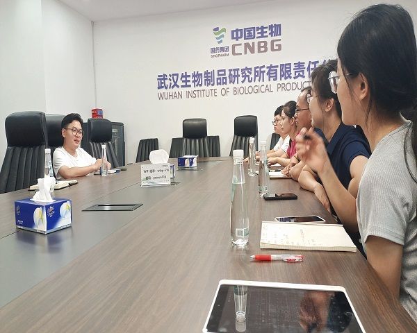 两位指导老师在出发前为实践队成员做出发动员讲话,并叮嘱实践队成员应遵守规章制度,有序且安全的开展企业调研。我院实践队成员在到达武汉生物制品研究所有限责任公司后,受到了该公司的热情招待,并在三位公司相关部门高管们的带领下了解到该公司业务范围及部门设立。