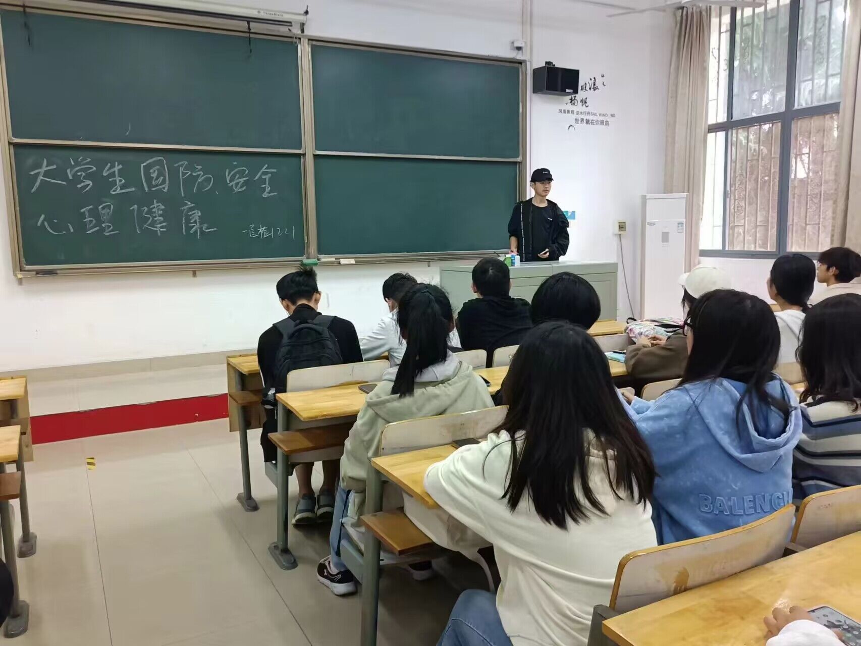 医学检验技术1221班在教学楼3-109教室开展了“大学生国防、安全、心理健康教育”网络公益大讲堂活动。本次活动由班长主持班长给同学们观看有关本次活动的录播的视频。