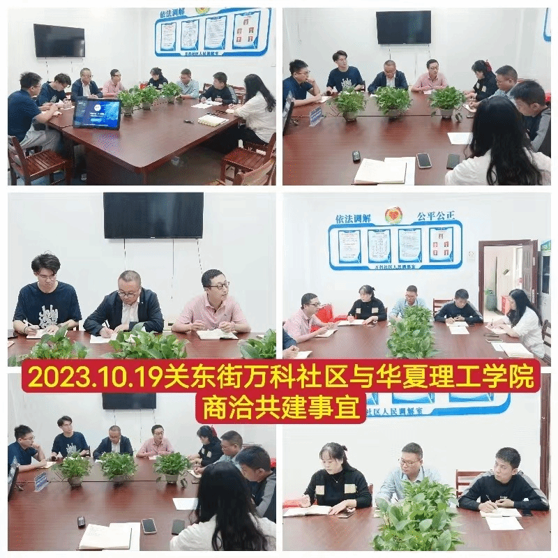 为了积极响应“大学生社区实践计划”的工作要求,扎实推进社区实践服务计划的高效落地,10月19日上午9:00,武汉华夏理工学院团委书记张勇与生物与制药工程学院团总支走访了关东街万科社区,与社区书记靳如花、副书记陈安等洽谈了关于大学生下沉社区开展实践活动的相关事项。