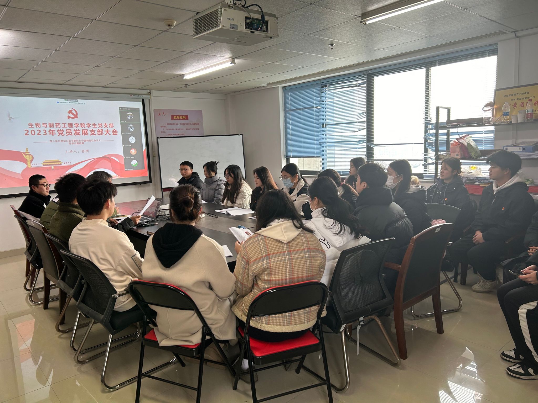 为扩大生物与制药工程学院学生党员队伍、发扬党支部的优良品格,我院学生第一支部于2023年12月20号中午12点15分在综合楼1119会议室召开党员发展会议。会议由支部书记张明书记主持,生物与制药工程学院两个学生支部的党员党员参与会议,外国语学院党总支书记组织员陈卓到会指导和监督会议的开展情况。