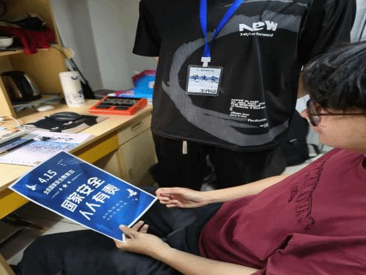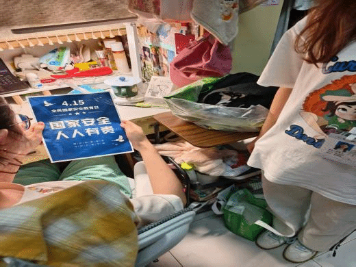 研讨结束后,学生会成员化身国家安全宣传志愿者,走进宿舍,开启线下宣传行动。志愿者们主动与宿管阿姨沟通交流,用通俗易懂的语言讲解国家安全的重要意义,普及日常宿舍管理中涉及的安全防范知识,提醒宿管阿姨在日常值守中留意安全隐患,共同守护宿舍区域安全稳定。同时,志愿者们深入宿舍,向同学们发放国家安全教育宣传手册,面对面讲解国家安全知识、反奸防谍技巧、网络谣言辨别、消防安全常识等内容,结合校园真实案例,引导同学们认清国家安全的丰富内涵,明白维护国家安全不仅是国家大事,更是每个公民的法定义务,鼓励同学们从自身做起,自觉抵制危害国家安全的行为,主动学习安全知识,提升自我防范能力。