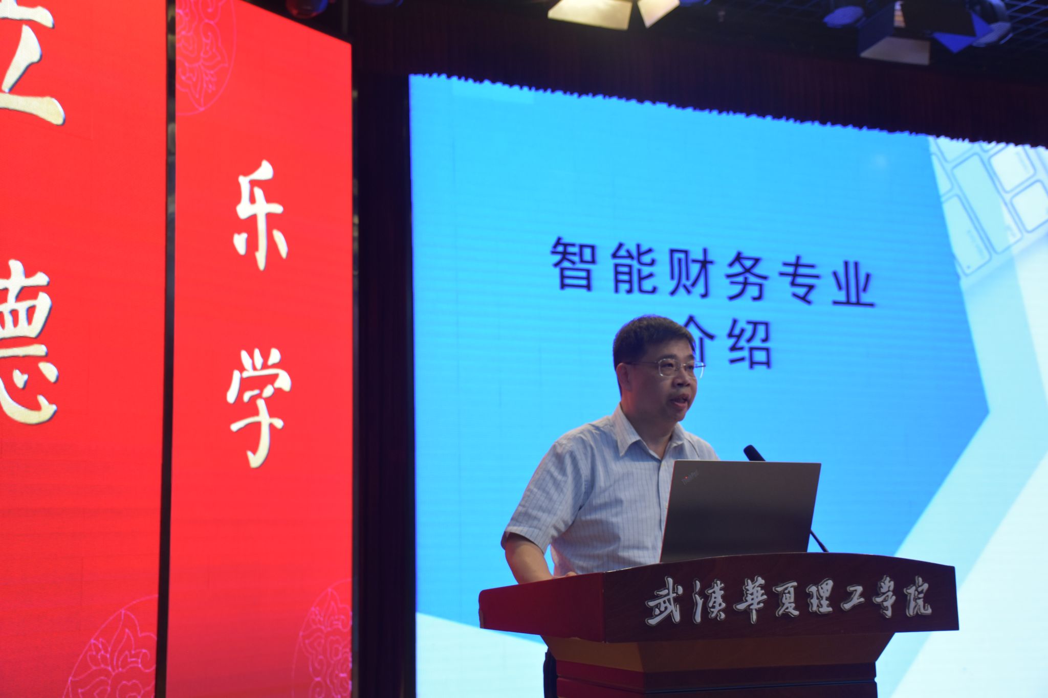 武汉理工大学管理学院教授、硕士生导师方明,武汉理工大学经济学院教授、博士生导师彭定赟分别介绍了智能财务以及金融科技等相关专业概况和发展前景。同时他们指出武汉华夏理工学院商学院是学校办学规模大、综合实力强的新文科重点建设学院之一,师资力量雄厚,有成熟的人才培养方案和培养体系。最后,教授们对各位同学提出殷切希望,表示选择了华夏,就要扎根华夏,同学们要在各自的专业上努力学习,不断提升理论知识,加强实践锻炼,增强专业自信。