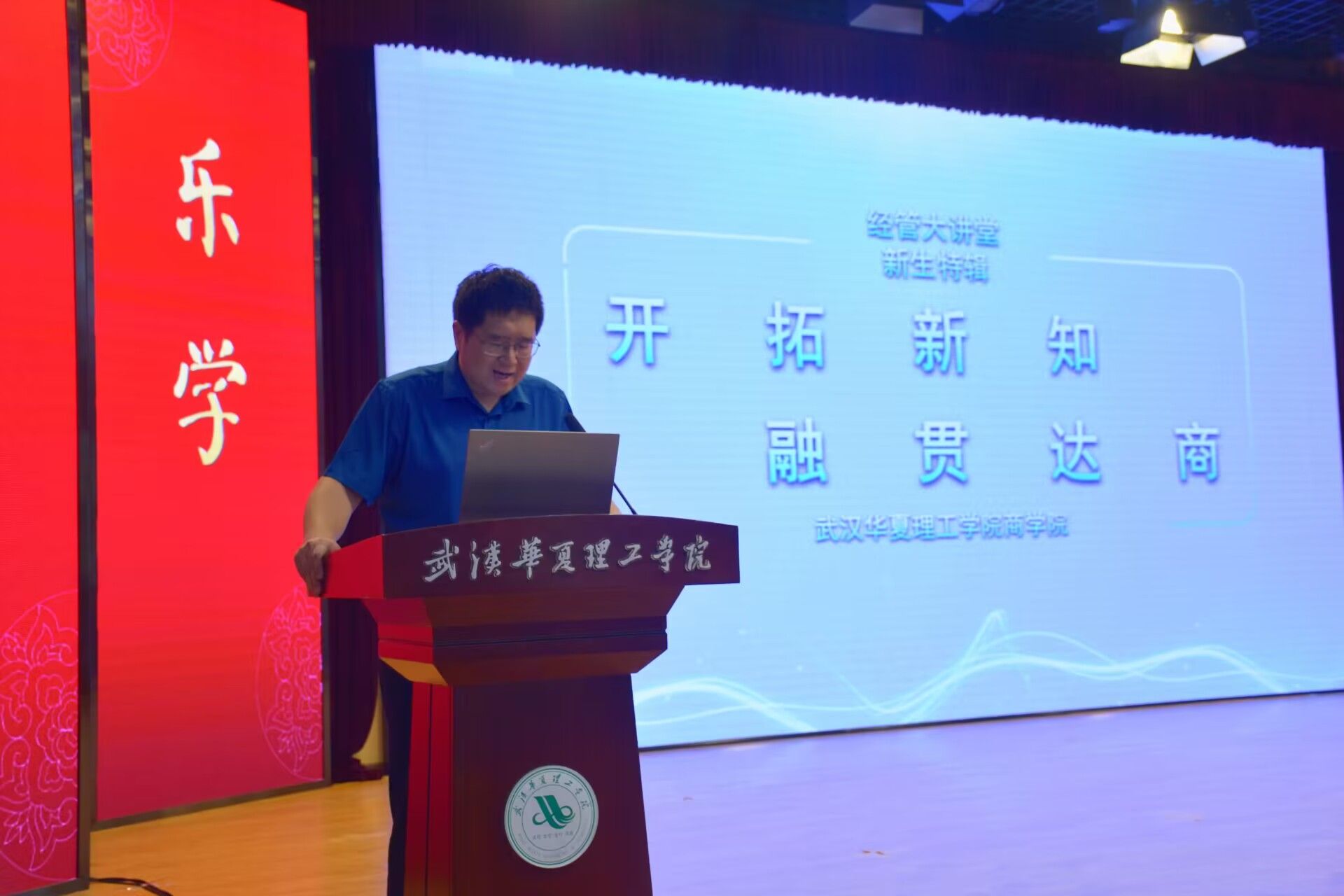 讲座伊始,刘佳院长代表学院对各位2023级新生的到来表示热烈欢迎,并隆重介绍了出席此次讲座的学院领导及老师。