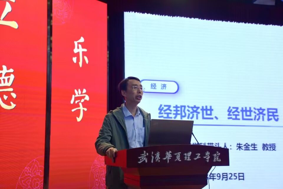 武汉理工大学经济学院教授、博士生导师,武汉华夏理工学院商学院经济学学科带头人朱金生系统介绍了商院经济类专业的基本情况,包括专业类别,师资概况。朱金生教授以史学视角,阐释了经济发展史,通过对历代海上霸主兴衰的梳理,反映出世界经济贸易与国家实力的相关性。最后,朱教授立足于时代发展现状及社会发展需求提出,要培养具有较强的业务能力、沟通能力、国际纠纷处理能力、分析决策能力、国际管理能力和全球视野的国际经贸复合型人才,要把“一德、二基、三能、四证”作为国际经贸专业人才培养的规格定位。