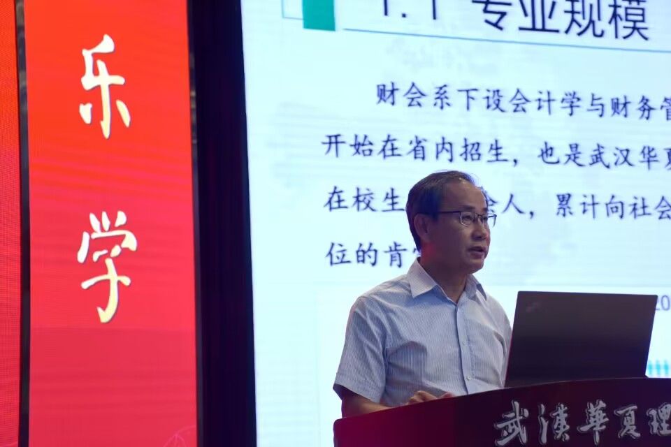 武汉理工大学博士生导师、商学院财经类特色专业集群责任教授胡华夏以“会计学专业人才培养现状与未来发展方向”为主题,给2023级新生同学介绍了会计学专业基本情况。他指出学院会计学专业规模逐年扩大,师资力量雄厚,在同类高校中优势明显,培养了一批又一批的优秀学子。其次,胡教授强调,在AI时代背景下会计学发展呈现出多样化,多元化的趋势,并不断形成多学科,跨专业的交叉的局面。从金融学到计算机学科,从管理学到业财融合,会计学始终在不断寻求具备专业特色的发展方向。最后,胡教授对各位23级新生学子提出殷切希望,希望大家能尽快适应学校及学院的环境,提高自我和行业认知,意识到“经济越发展,会计越重要”这个核心论题,要创新思维,不断提升知识、技能、培养良好的职业特质和职业价值观,才能立足于社会之林。