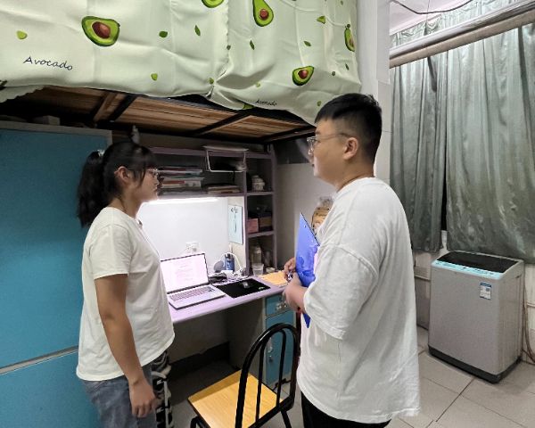 查寝过程中,辅导员们深入学生寝室,面对面与学生们亲切交谈,耐心地介绍了我院开展“抓室风、促班风、建校风”的优良传统和重要意义。辅导员们表示,寝室是我们共同的家,需要我们共同的经营和爱护,我们的家才会更和谐、更美丽、更温馨。同时,辅导员们叮嘱同学们一是要养成文明礼貌的品行,遵守礼仪,修养身心,主动向师长问好,展现良好的精神风貌;二是打造干净、整洁、文明的寝室环境,禁止使用违禁电器和饲养宠物;三是尊师重教,锤炼品格,修养德行,劝导学生不要带早餐进教室,不要穿拖鞋背心进教室,不得在公共区域抽烟。辅导员们最后鼓励同学们建设良好的室风促进纯正的班风和优良的校风。