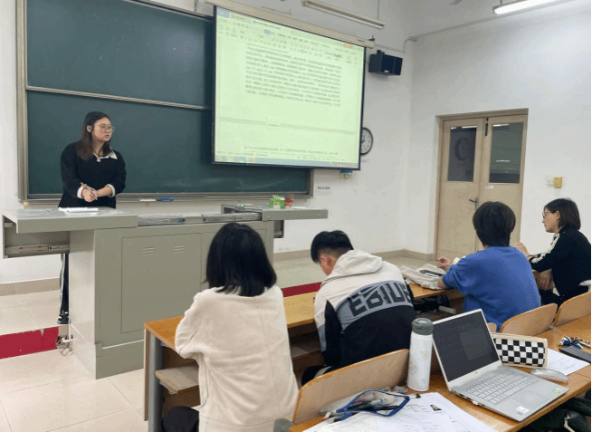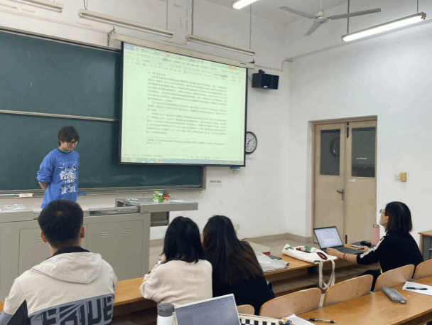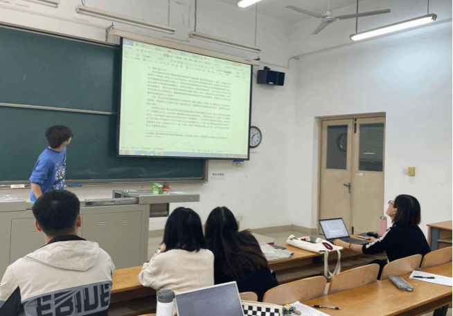 会议第二个阶段是郑康峰和李翠妍所负责的调研部分,也是本次会议的重要内容。李翠妍同学上台讲述了他们问卷所提出的问题依据,也展示了他们两位这段时间的工作成果。在问卷展示的过程中,吕杜老师对问卷的内容也提出的相关的改善措施。