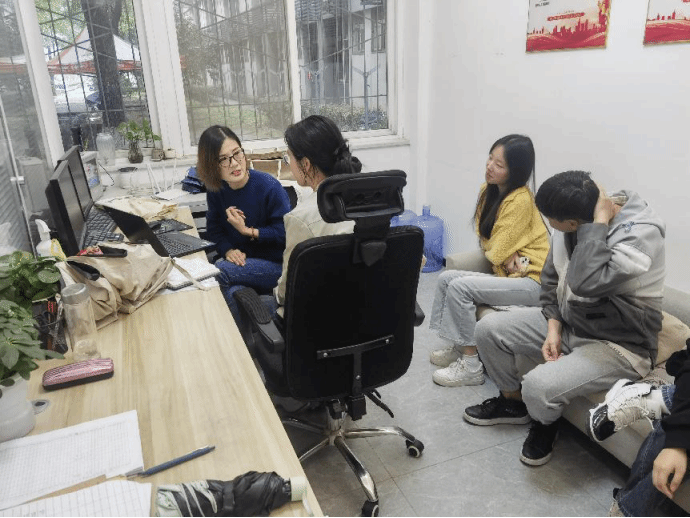 吕杜老师是国贸1221班的班主任,由于本学期没有给该班上课,为了更加方便及时地掌握学生学习情况,吕杜老师会不定期约谈班上的同学,此次进辅导员社区也是提前告知了学生,希望同学们能主动找到老师咨询专业学习过程中的问题。整个上午的时间,吕杜老师都在和学生交流,涉及到专业课程学习、专业证书的获得、毕业的打算、毕业论文等等方面的问题。
