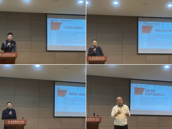 大华会计师事务所审计部经理周志、利安达会计师事务所副总经理蒋玄斌、浦新会计师事务所合伙人陈涛、百胜中国共享服务中心财务运营总监王静分别介绍了各公司的发展历程、业务板块等基本情况。期望以人才基地建设为契机,校企双方在人才培养、科学研究、科技服务等方面协同合作,实现教育与产业同频共振、学校和企业共赢发展。