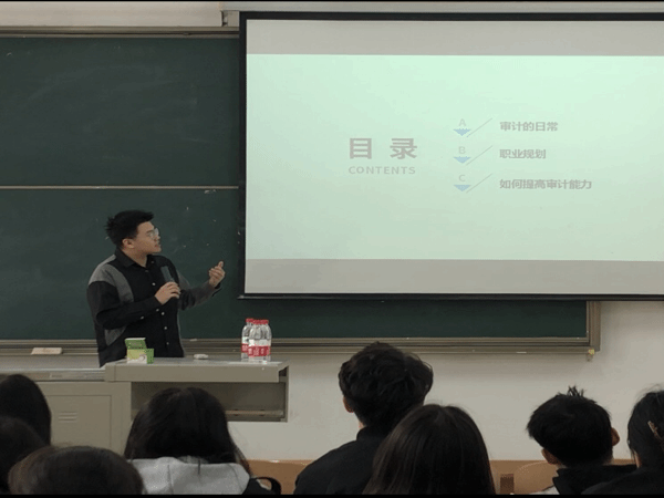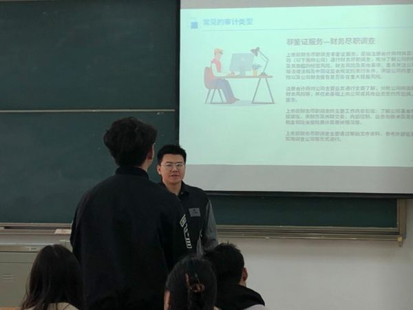 周经理从审计日常、职业规划和如何提高审计能力三个方面进行了讲解和交流。在审计日常方面:周经理从注册会计师业务范围出发阐述了审计工作具有挑战性和阶段性;审计是对错综复杂的信息资料进行收集、整理和分析;每年的12月份至隔年的4月份时年报审计的工作忙季。在职业规划方面:周经理结合自己的经历从审计员阶段、项目经理、企业方向——总账会计、财务主管三个方面进行了讲解。在如何提高审计能力方面:周经理从EXCEL技能、CPA考试、团队配合、思考与总结四个方面进行了分享。