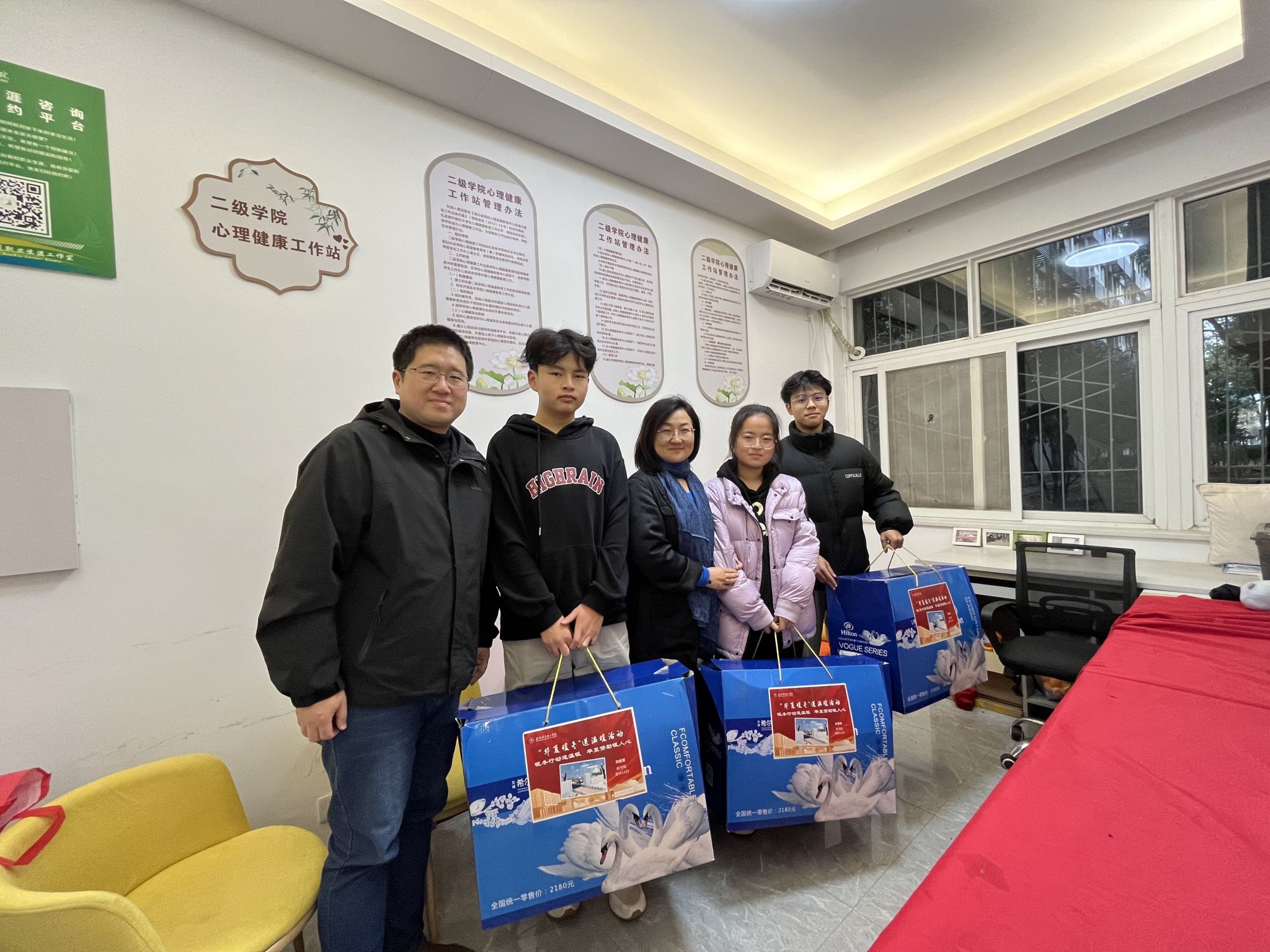 2023年12月1日下午,校长助理、教务部部长李猜在商学院党总支书记孙文胜、副院长刘佳、学工办主任潘晶等同志的陪同下走访四号楼学生社区关心慰问贫困学生,为家庭经济困难学生送上冬日的礼物——棉衣、棉被、保暖内衣,帮助贫困学生温暖过冬。