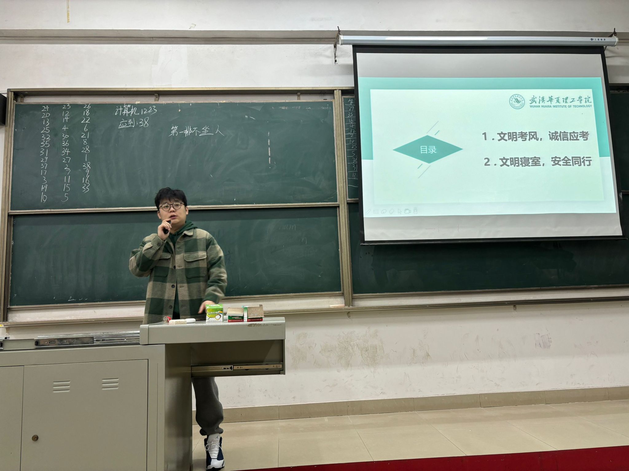 为了加强诚信意识教育,塑造良好道德品质,杨峰博老师于1月1日18:00在教学楼2-101举行了以“文明考风,诚信应考”为主题的晚点评。