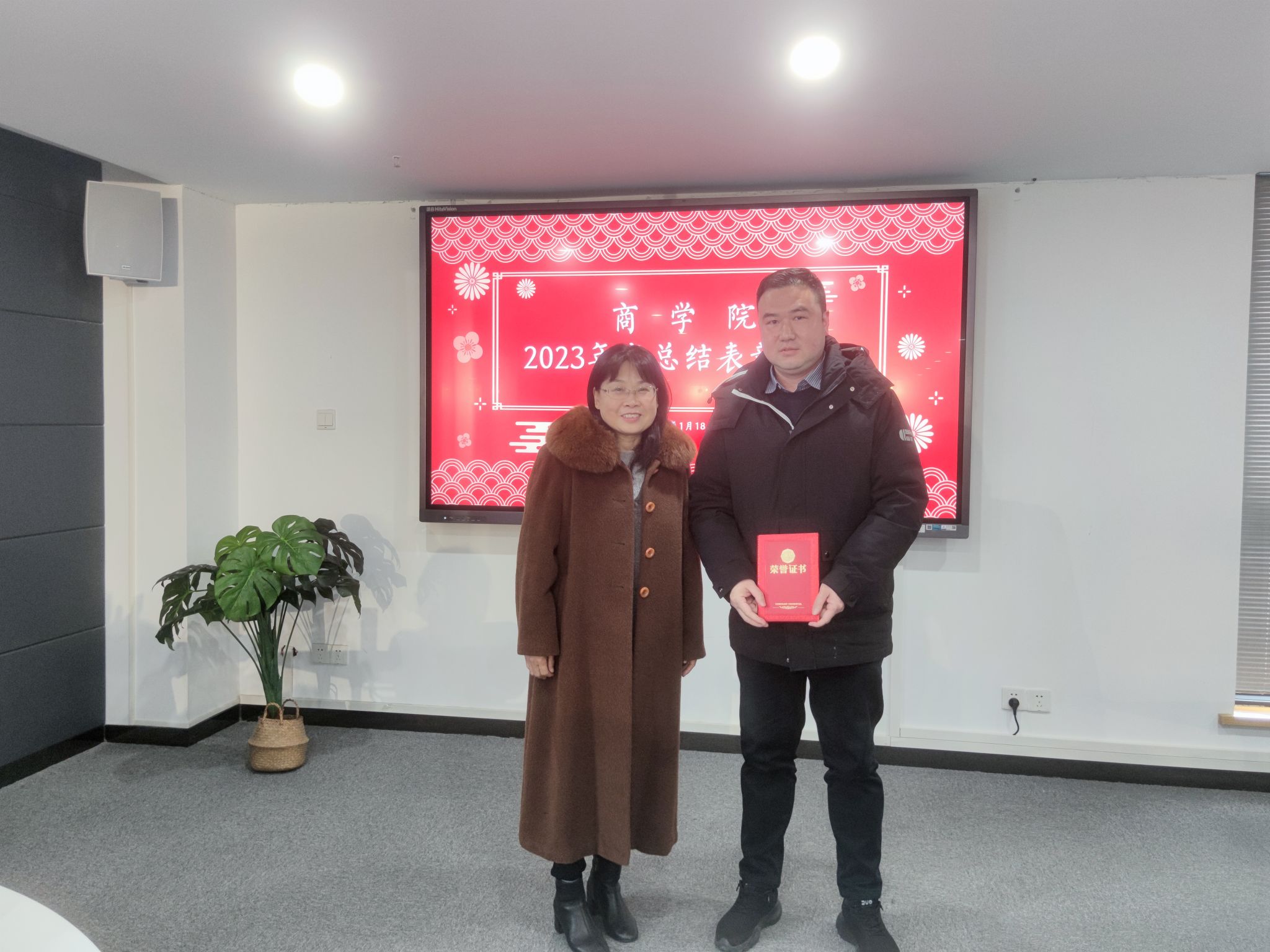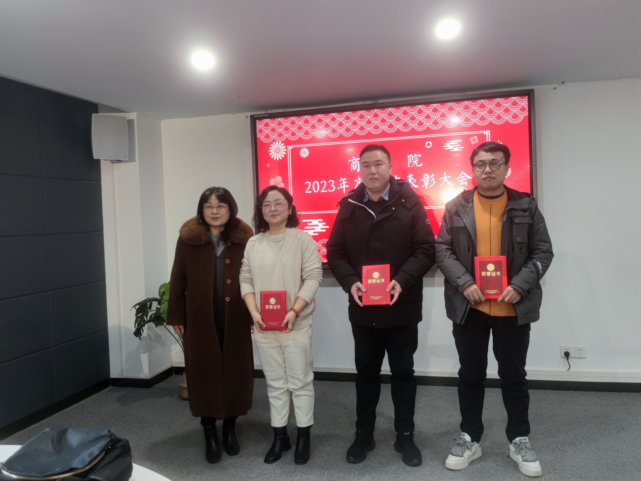 为表彰先进,学院决定对2023年度表现优秀的集体和个人予以表彰。孙文胜宣读了《商学院学院关于表彰2023年度优秀集体和先进个人的决定》,授予陈雪梅等2名教师“个人突出贡献奖”,授予李琼等2名教师“标志性成果奖”,授予“国贸与金融系”为“校企合作优秀单位”,授予“数据商务赋能创新科研团队”为“优秀科研团队”,授予“财会系”为“学院先进单位”和“招生工作优秀单位”,授予“大数据与电商系”等2个个集体为“就业工作优秀单位”,希望受到表彰的集体和个人在新的一年团结奋斗,踔厉奋发,再启新篇。