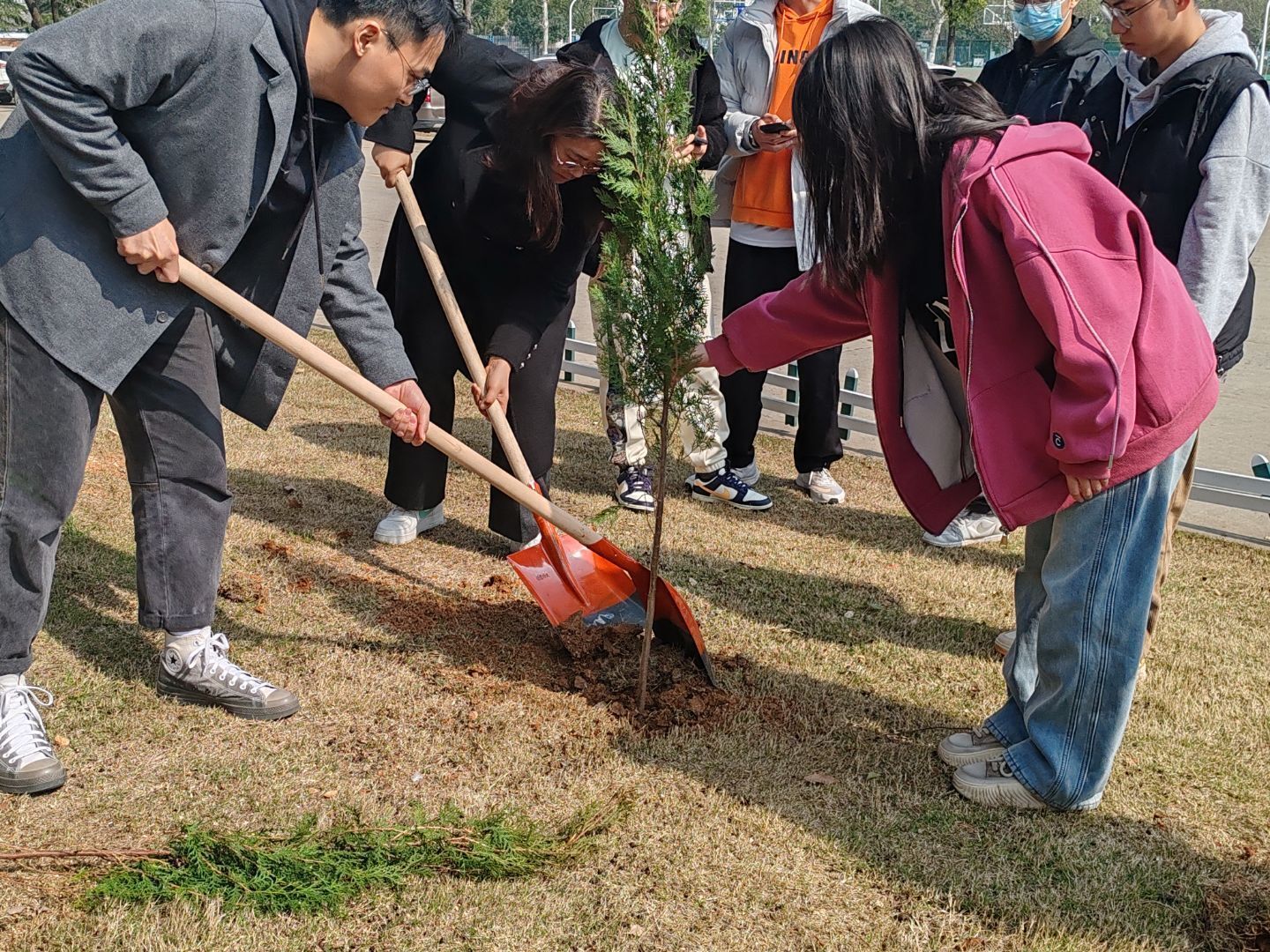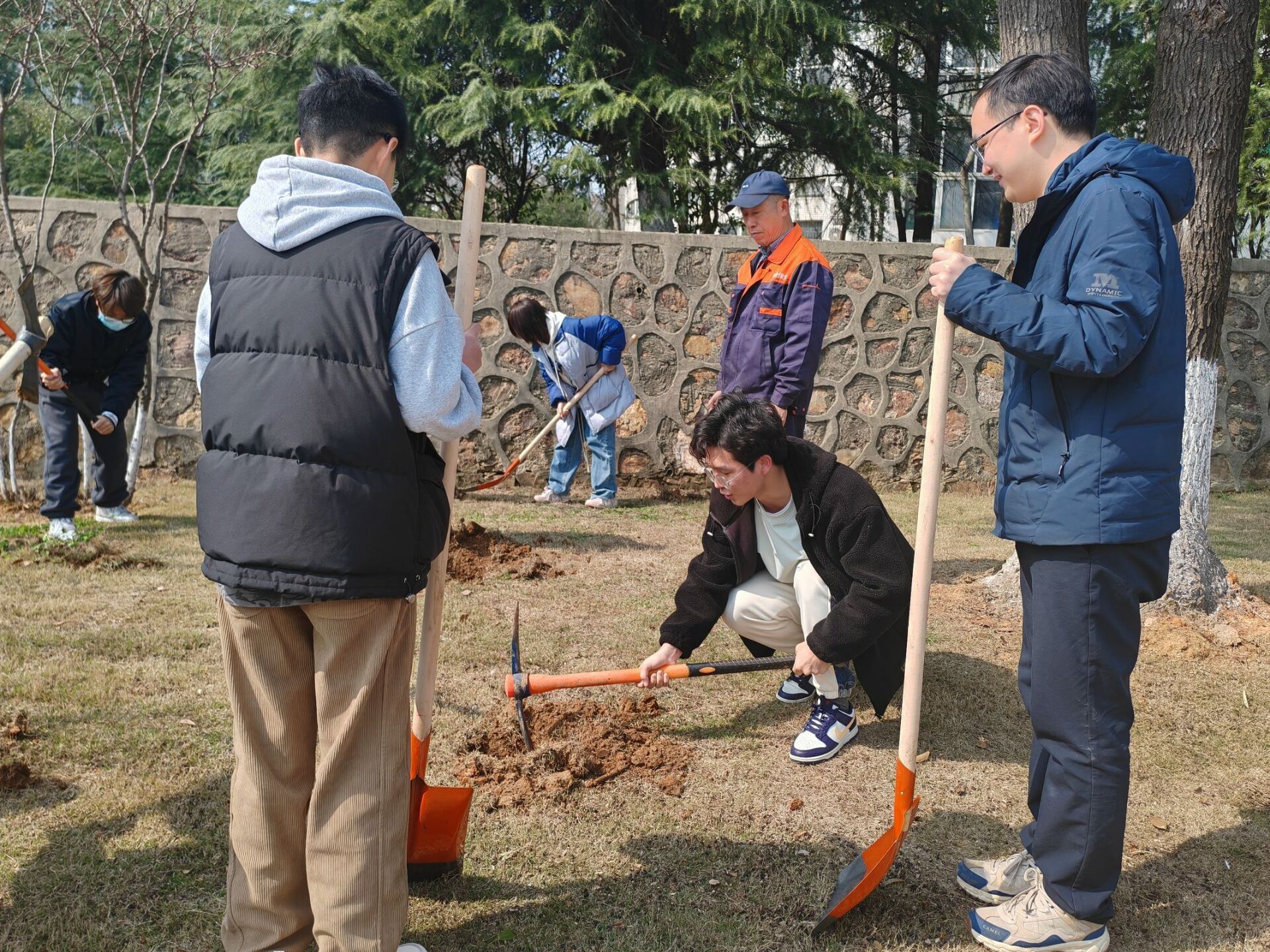 商学院领导老师与志愿服务队的成员们一起以植树节为契机开展了一项植树活动。活动当日,由学校工作人员带领志愿者领取植树的相关工具,并到达学校指定的活动场地。准备活动结束后,在植树指导员的帮助下,领导老师与志愿者们有序地进行挖洞、放入树种、原土填穴、根部浇水滋养等一系列的种植工作。在老师与志愿者们的密切配合下,大家细致高效地完成了活动任务。