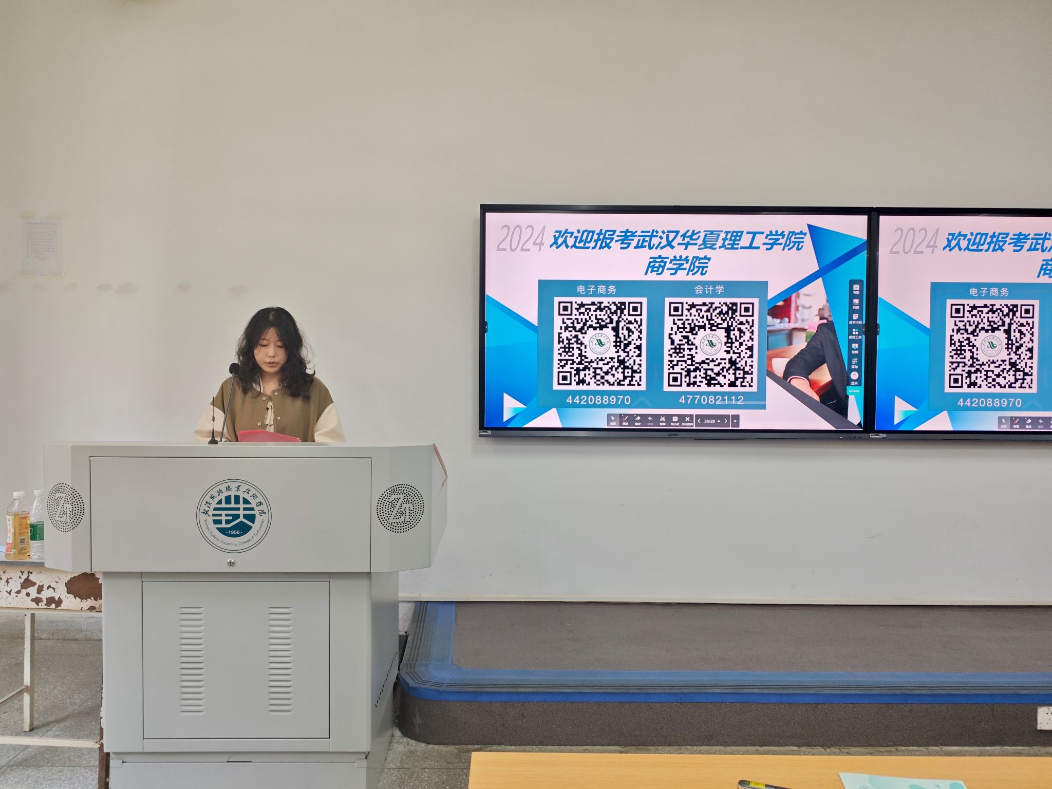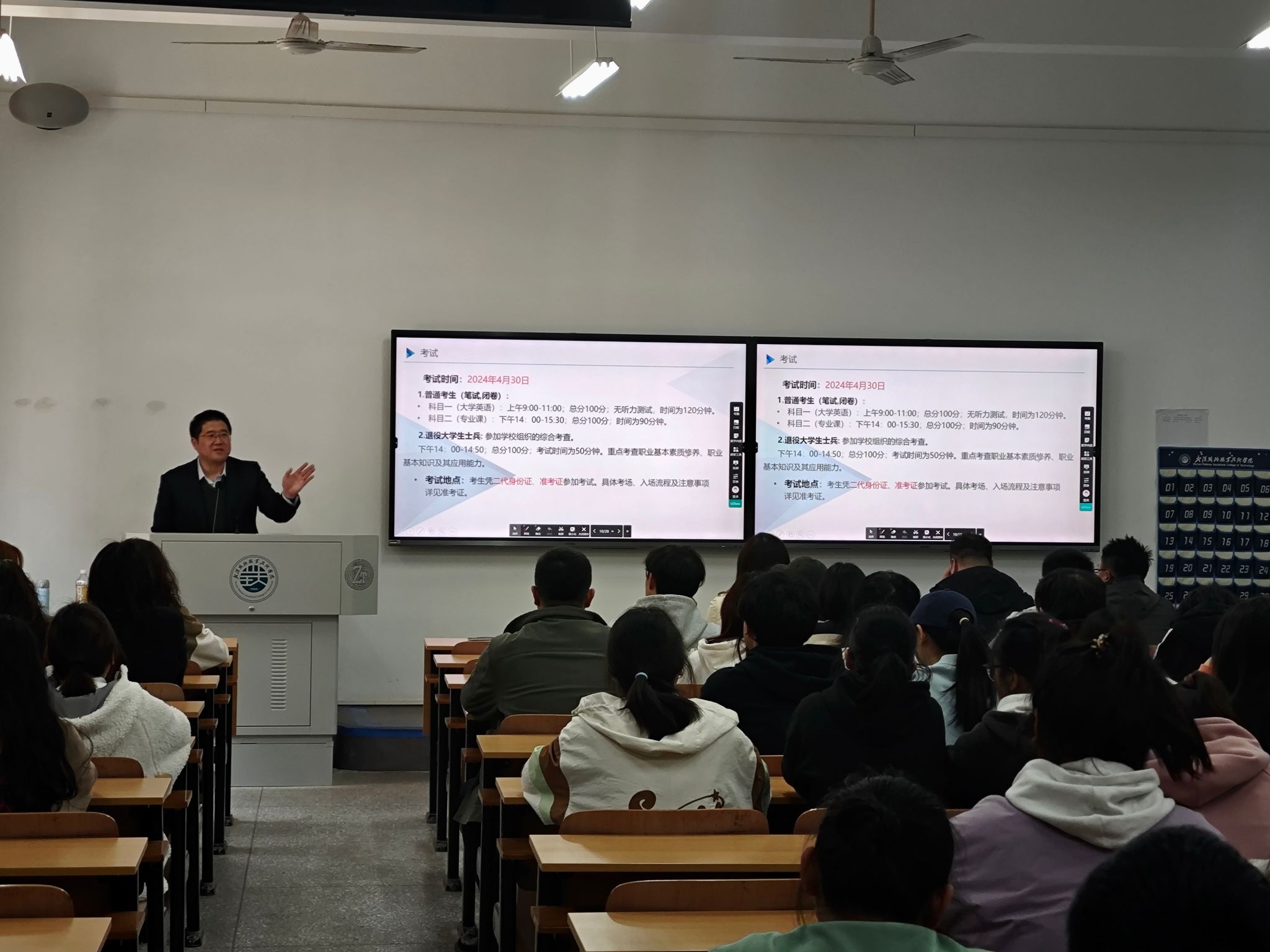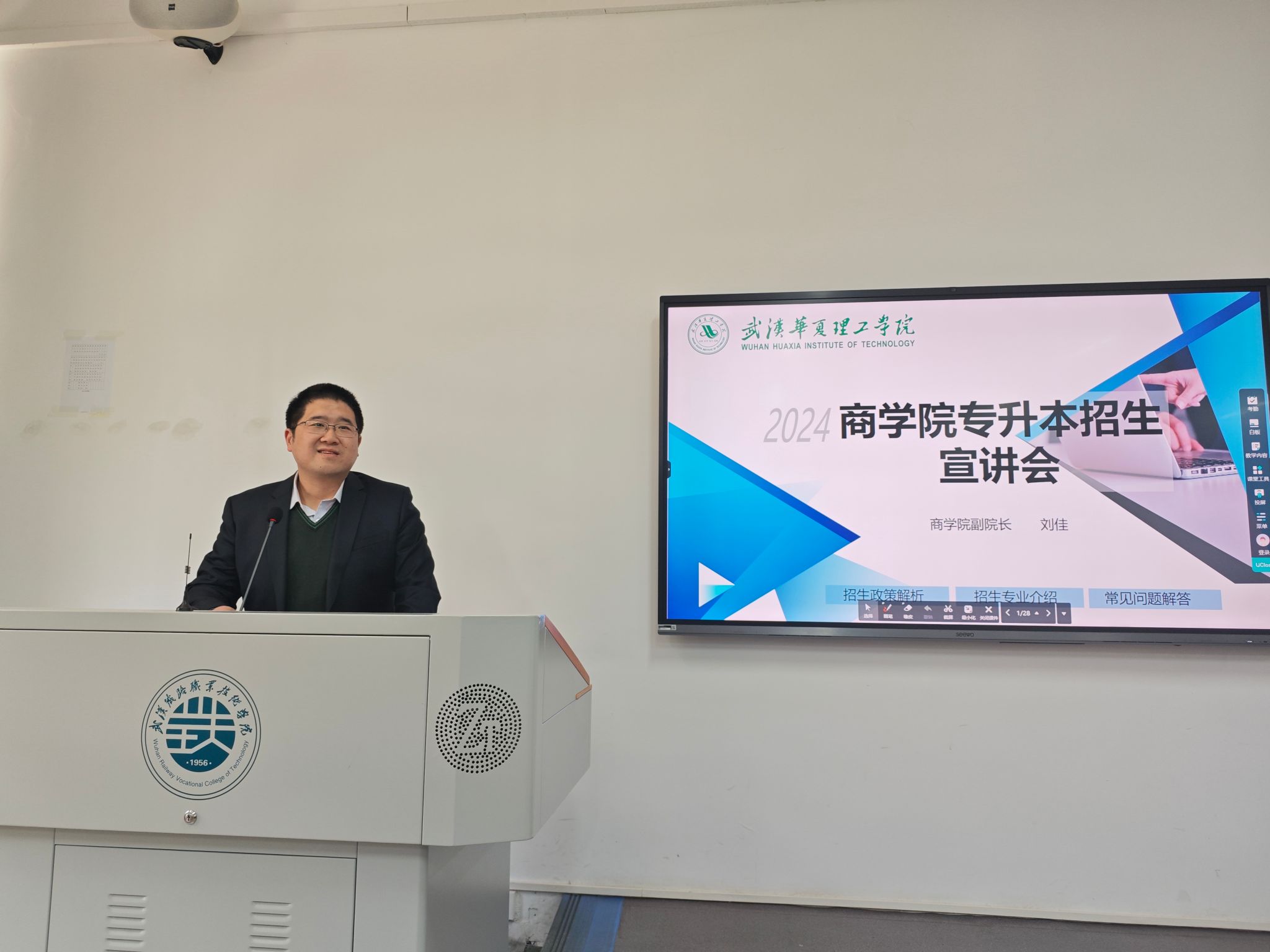 宣讲会开始,刘院长首先详细地介绍升本的相关政策,包括报名条件、考试科目、录取标准等,帮助学生了解升本的基本要求;然后对学校整体情况和商学院招生的两个专业进行了全面系统地介绍,让考生了解学校的特点和优势,为他们选择合适的学校和专业提供参考;最后就常见问题进行了梳理和解答。