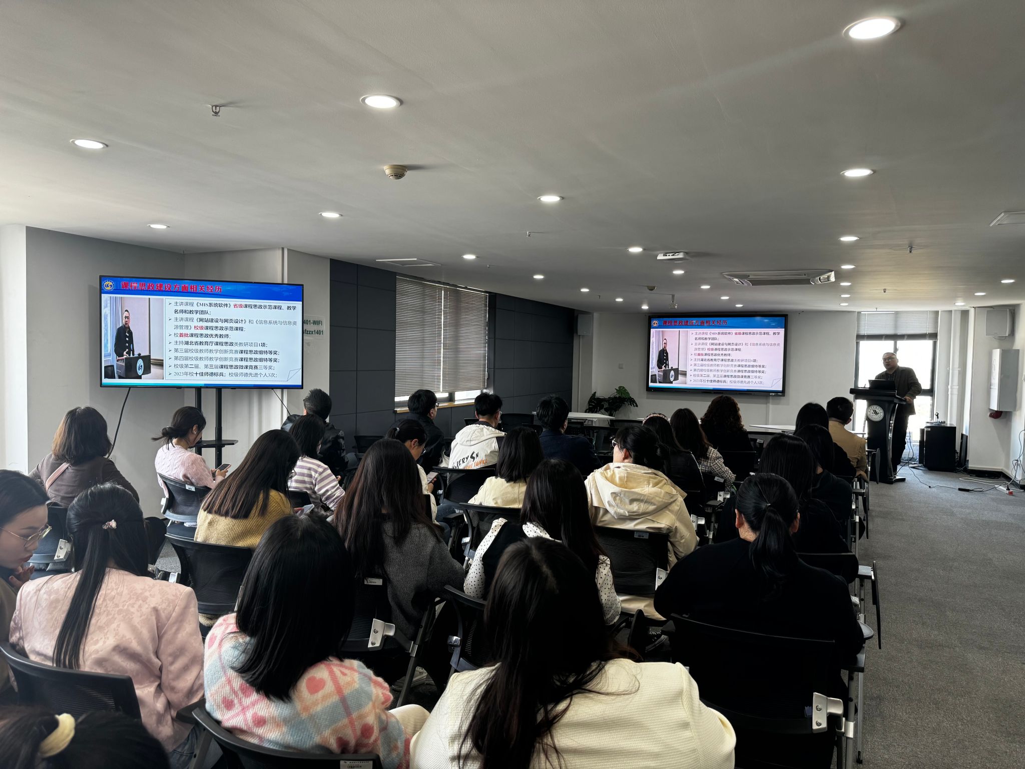 为全面推进全院课程思政高质量建设,落实立德树人根本任务,商学院邀请国家级一流课程负责人、武汉理工大学管理学院江长斌副教授在教师发展中心会议室举行了以“专业技术类课程思政融入的探索与实践”为主题的讲座。