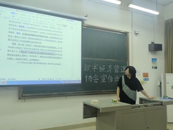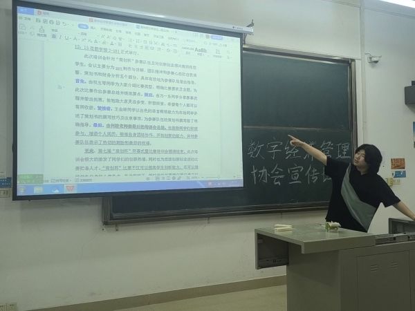 为提升数字经济管理协会宣传质量,使数字经济管理协会宣传工作取得切实进步。武汉华夏理工学院商学院学生会宣传部于2024年4月11日晚在2-104主办数字经济管理协会宣传培训会,由商学院学生会宣传部学生骨干魏冕主讲。本次活动旨在密切数字经济管理与宣传的联系,使数字经济管理协会成员进一步熟练宣传技巧,促进数字经济管理协会宣传能力获得有效提高。