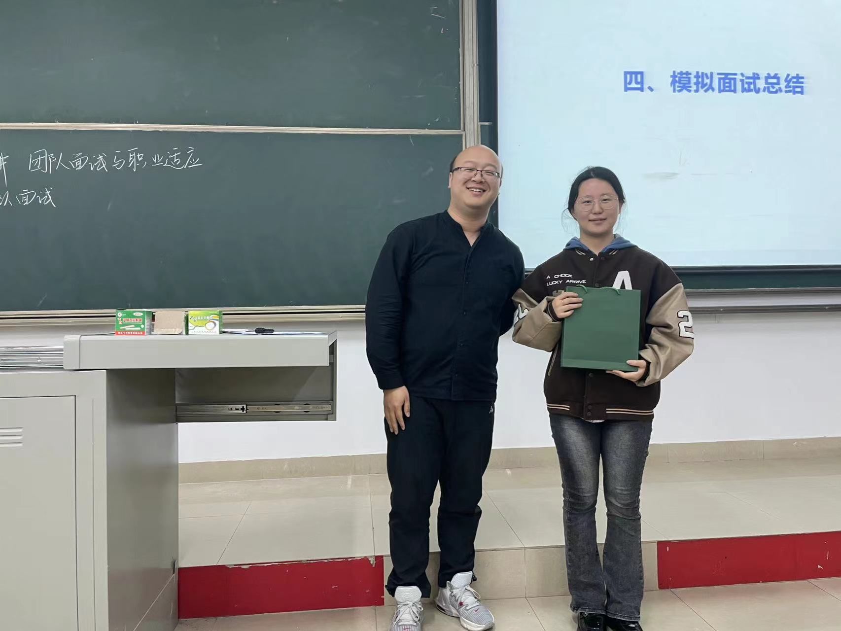 为鼓励参赛选手展示自我,磨炼求职本领,潘晶主任、刘浩波组织员事先为参赛选手精心准备了奖品,同学们不仅收获了奖励,也增长了见识。