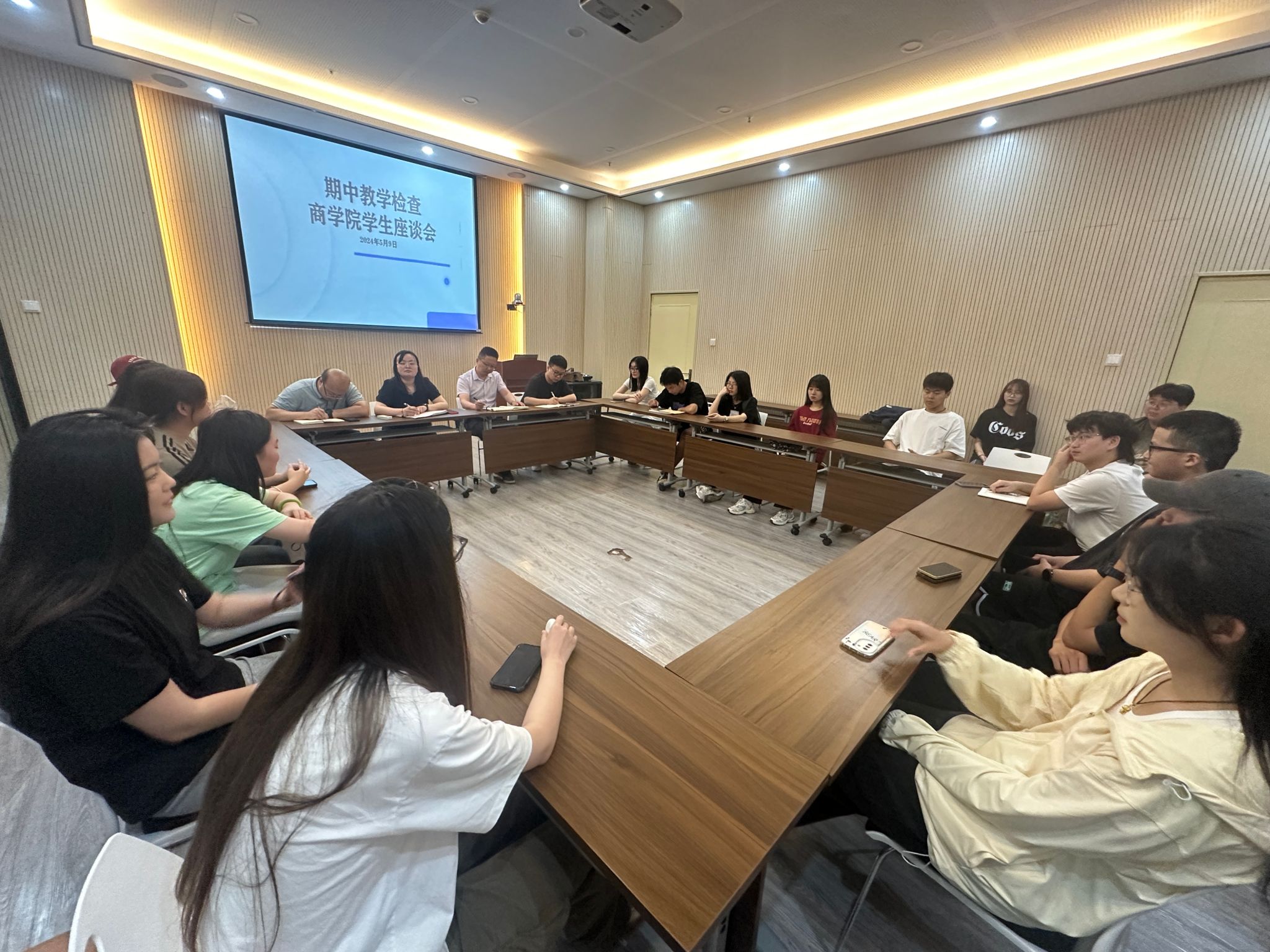 本次期中教学检查师生座谈会有利于搭建师生之间沟通的桥梁,有利于促进学风、班风的优化。学院下一步将围绕学生提出的诉求和建议,不断改善条件,提升服务质量。相信师生之间携手共进,定会让商学院的明天更加的美好。