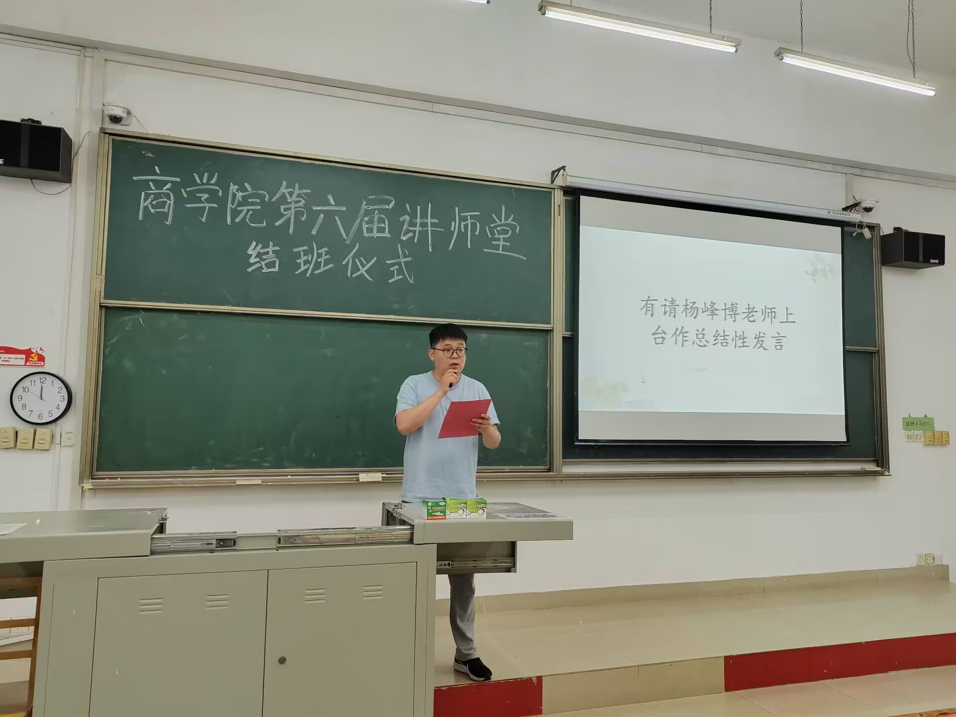 为提高学生们学习的主动性和积极性,营造好学向上、教学相长的学习氛围,打造学习气氛浓郁的校园生活,为期一年的第六届讲师堂课程顺利结班。商学院团总支书记何啟、团总支副书记杨峰博、印象传媒指导老师杨斗以及讲师团成员参加了本次结班仪式,此次仪式由学生会学风建设部黄楷洪主持。