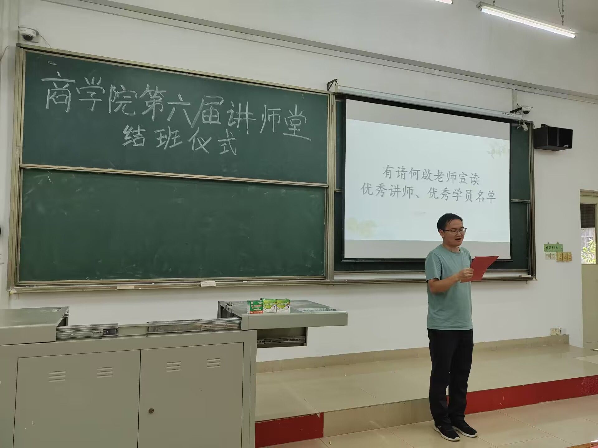 接下来由商学院团总支书记何啟宣读优秀讲师以及优秀学员的名单,他对莘莘学子提出了殷切地期盼并鼓励全体学生珍惜当下时光,心无旁骛求知问学,砥砺奋进增长才干,强化专业知识,筑牢学习根基。最后,由杨峰博老师进行总结性发言,他对讲师堂活动中认真努力的同学提出了表扬,立鸿鹄志,做奋斗者,树立自主学习的意识,养成良好的学习习惯,勇于开拓、顽强拼搏,新时代是奋斗者的时代,大家更要努力前进。