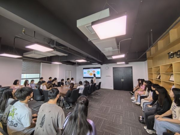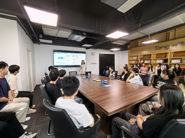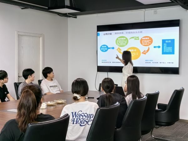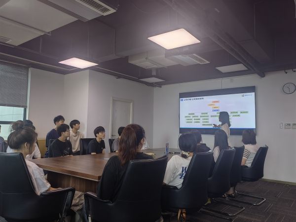 走进公司大门,映入眼帘的是“欢迎武汉华夏理工学院商学院财会系学子们”的显示屏,周总热情地接待同学们,并带领大家参观公司,介绍公司文化、工位设置、业务分区等。接着带领大家来到会议室,进一步讲解腾旅科技的项目投资背景、腾旅愿景、价值观、核心业务和成功案例。周总重点且详细地讲解公司组织架构及岗位职责,对于不同类型的公司,组织架构及部门设置不完全相同,各部门承担的主要职责也不尽相同,并结合实际案例解释各部门在实务种承担的具体事务。针对岗位设置周总与同学们积极互动,同学们也针对求职的意向部门与未来的职业发展与周总进行深入交流,周总对大家的问题逐一耐心解答。