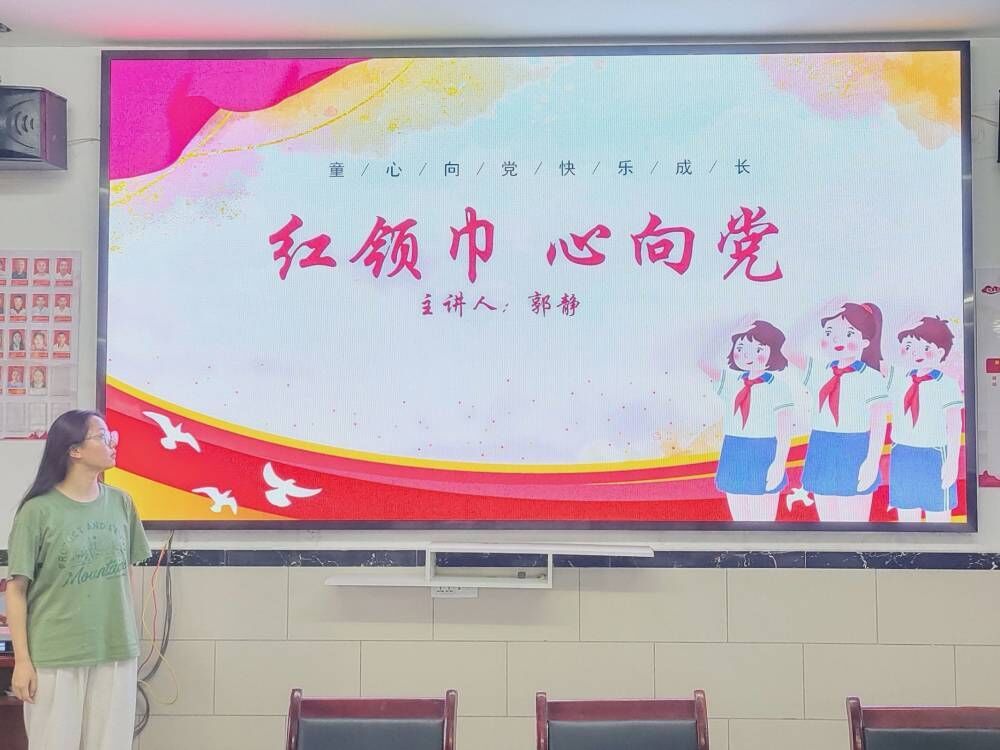 红色主题教育,实践队成员郭静开展了一次以“红领巾,心向党”的主题教育课堂。课堂上,实践队成员郭静精心设计课堂,循序渐进地讲解什么是中国少先队员以及哪天是中国少先先锋队日,亲身示范少先队队礼,孩子们都在认真地学习少先队队礼,脸部表情庄重严肃。紧接着,讲解了中国共产党的诞生和发展历程,培养了孩子们的爱国情怀和民族自豪感。最后,孩子们在实践队成员涂淦招的带领下,认真地学习唱《没有共产党就没有新中国》,最后在响亮的歌声本次特色主题教育课堂完美结束。