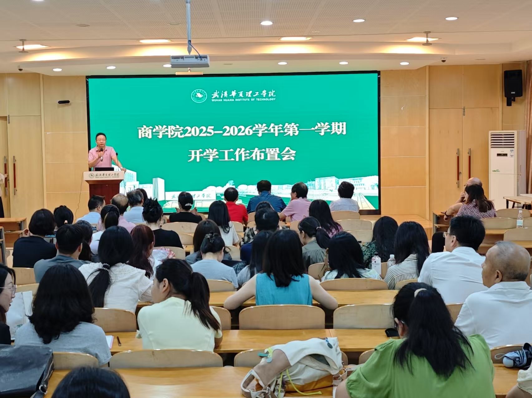 8月31日上午9时,商学院于2-201会议室召开2025-2026学年第一学期开学工作布置会。院领导及全体教职工齐聚一堂,共同谋划新学期发展蓝图。会议由党总支副书记孙文胜主持。