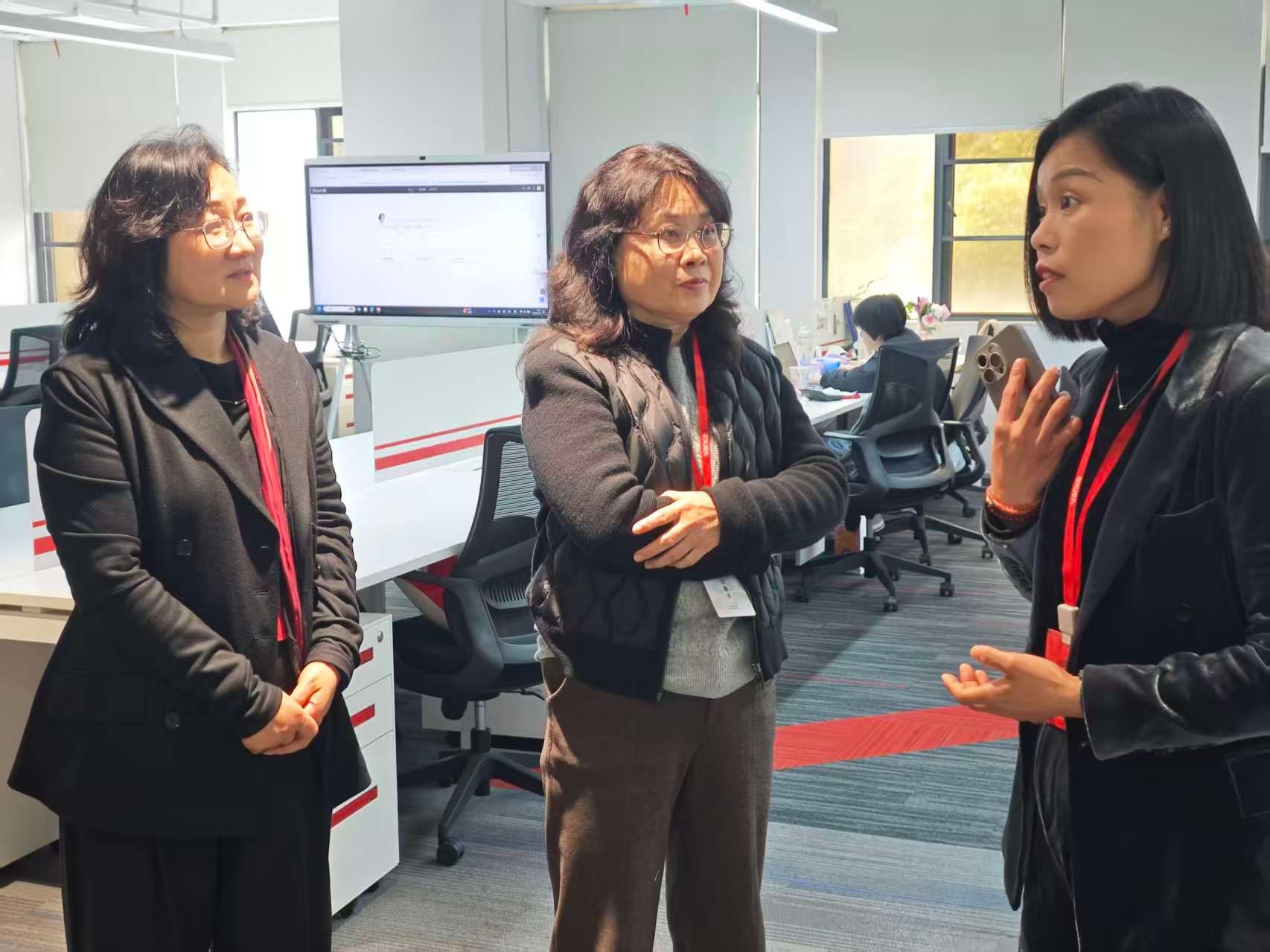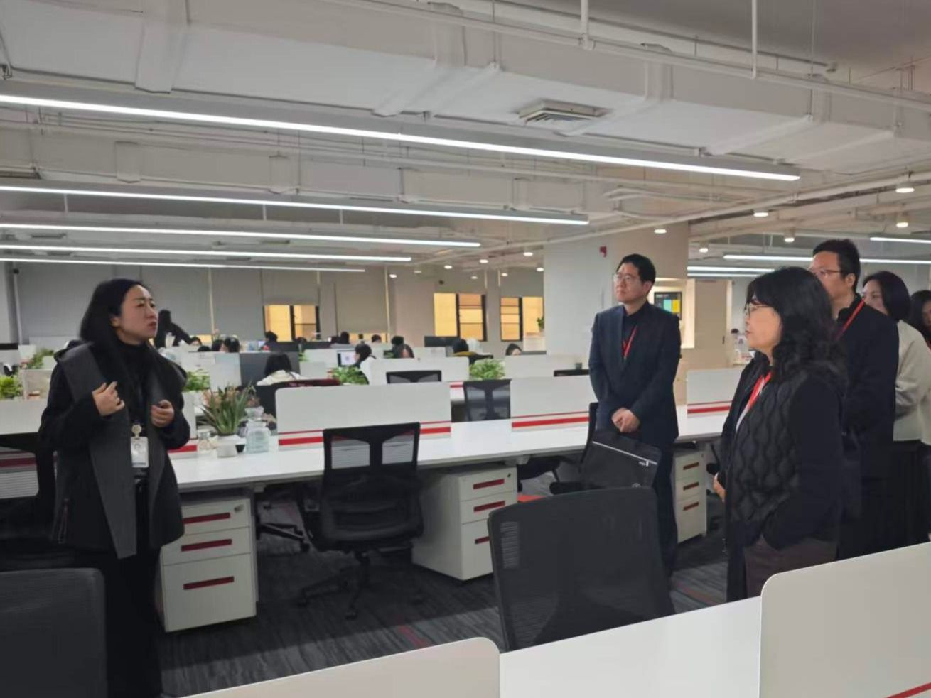 上午10时,参访活动正式开始。在万科集团财务共享中心相关负责人的陪同下,校方一行实地参观了企业智慧监控大屏、运营数据看板、AI客服与AI报销产品展示区以及员工活动区,深入了解企业在财务数字化、智能化管理方面的创新成果与企业文化建设情况。