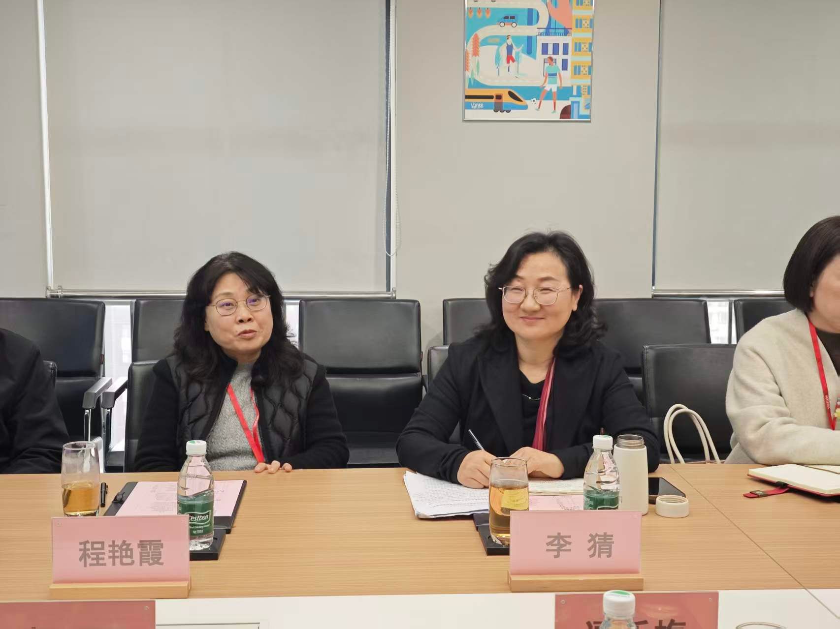 参观结束后,双方在19楼会议室举行了校企交流座谈会。会上,杨丽在座谈会上详细介绍了企业目前的发展情况、未来发展方向以及对人才培养的高度重视。李猜副校长介绍了学校近年来在应用型人才培养、产教融合等方面取得的成果,希望与万科集团在实习基地建设、课程共建、师资共享等方面开展更深层次合作。