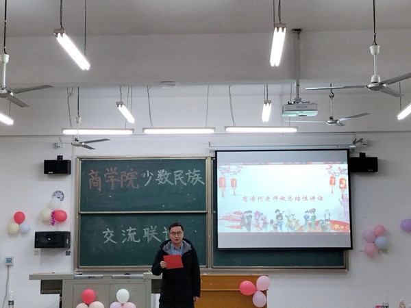 12月13日18点30分,商学院第六届少数民族学生交流联谊会在教学楼3-410隆重举行。莅临本次少数民族交流会的嘉宾有:党委学生工作部副部长张勇,商学院团总支书记何啟,团总支副书记张玉纯、瞿伟豪,21级辅导员余勇平,以及国贸与经融系老师赵亮。